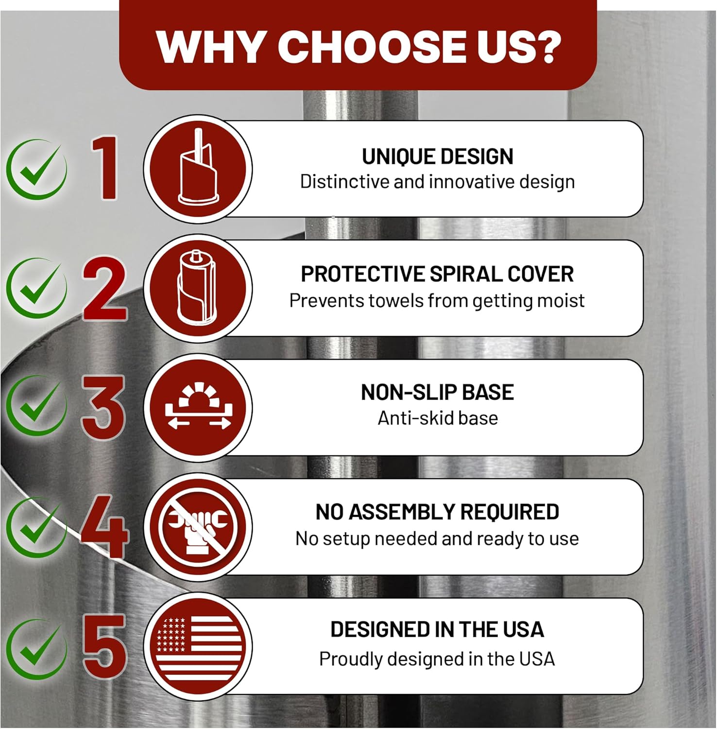 - Protective & Shielding Spiral Design: The unique spiral design prevents paper towels from getting dirty, keeps your kitchen or bathroom clean, neat and hygienic, and protects towels from unraveling or getting moist.
