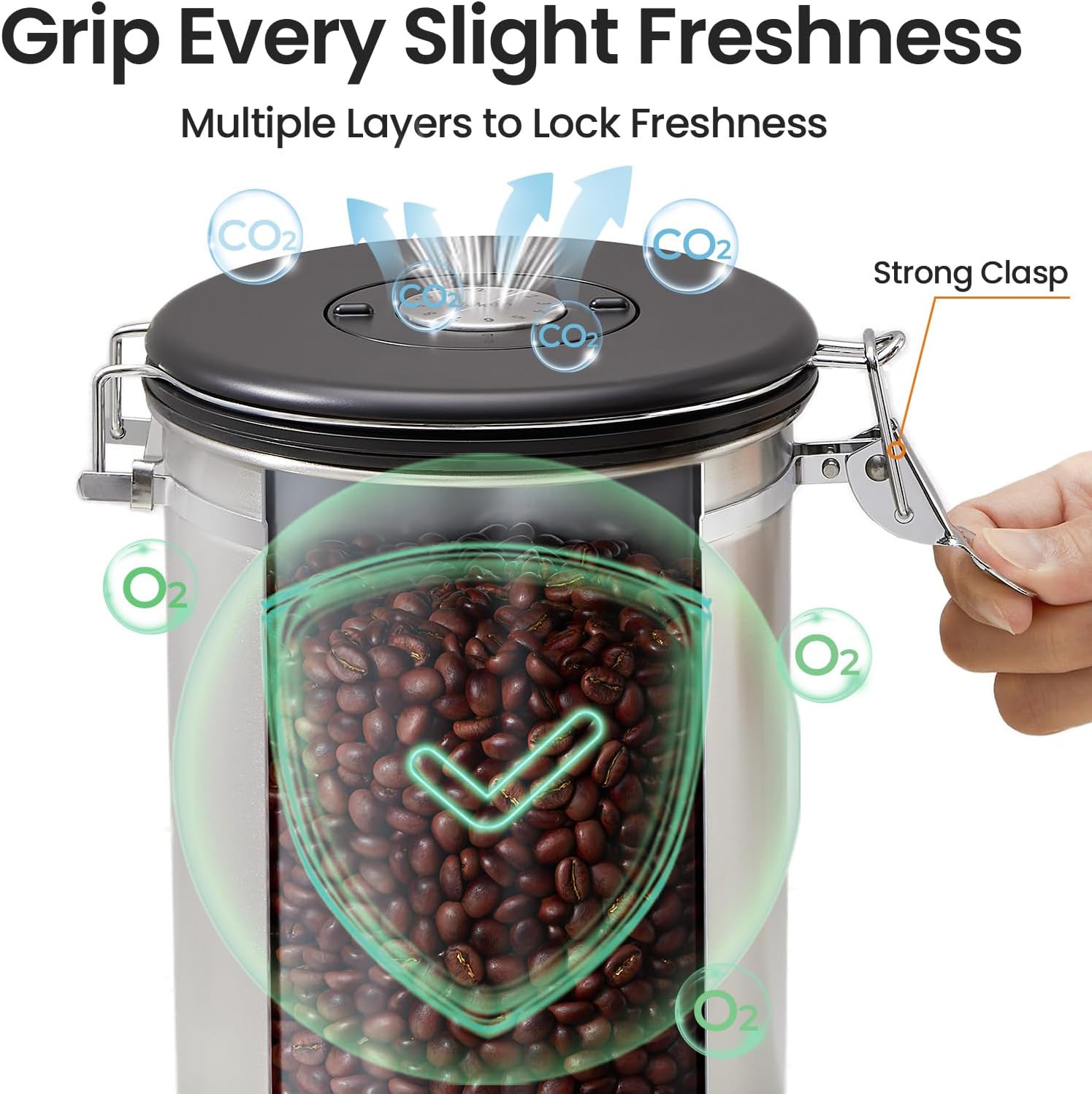 - 【Sunlight Blocked, Freshness Locked】 Our window-free design blocks sunlight to protect coffee beans from spoilage, while the one-way CO2 valve plus silicone rubber seal releases air without harmful oxidation. Experience original aroma preserved, every morning’s brew tastes like first grind.