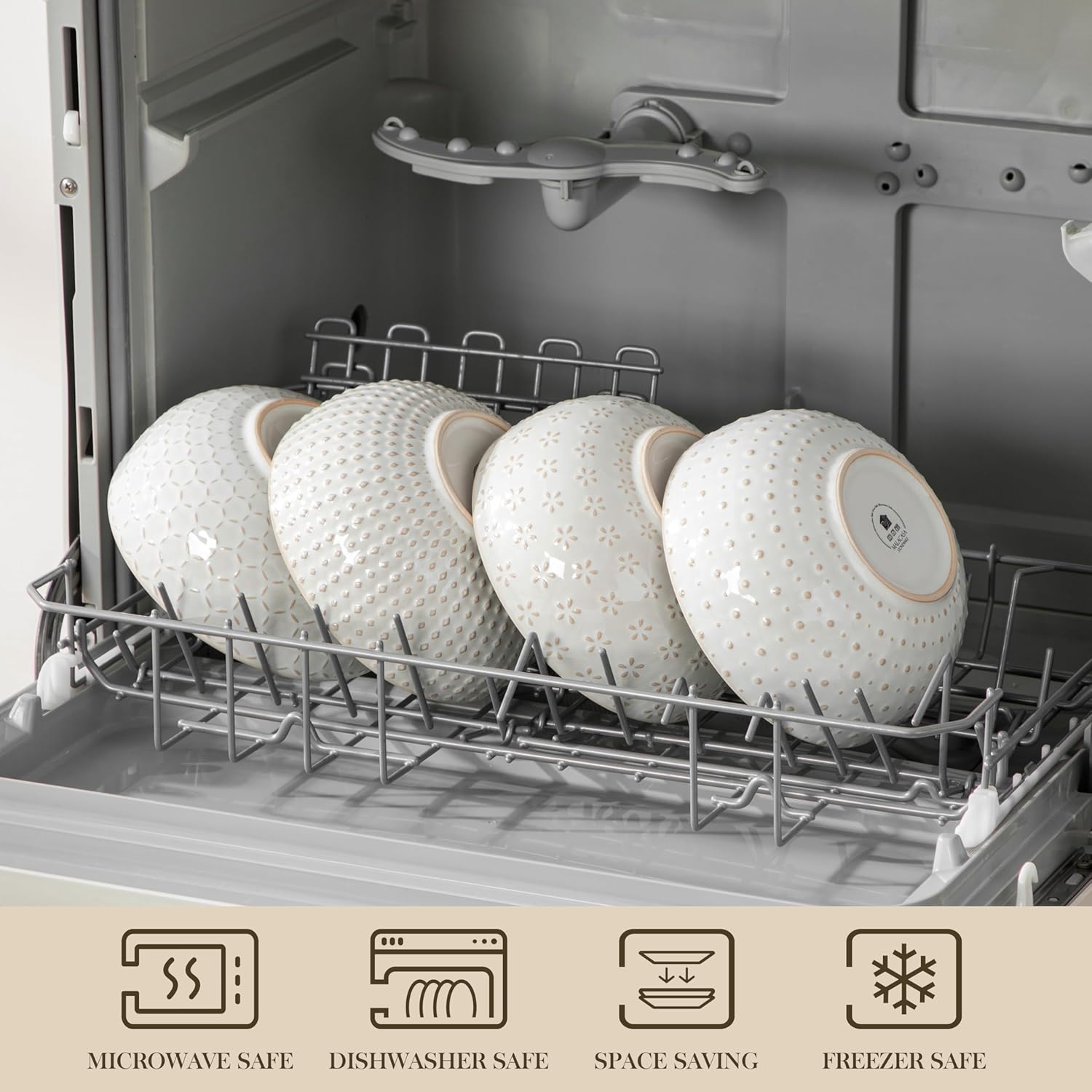 - 【Stackable and Dishwasher Safe】Dishwasher, microwave, freezer, and oven safe; you can wash the embossment stoneware bowls with detergent or put them in the dishwasher. The bowls can be compactly stacked to make plenty of room for other dishes in your kitchen cabinets