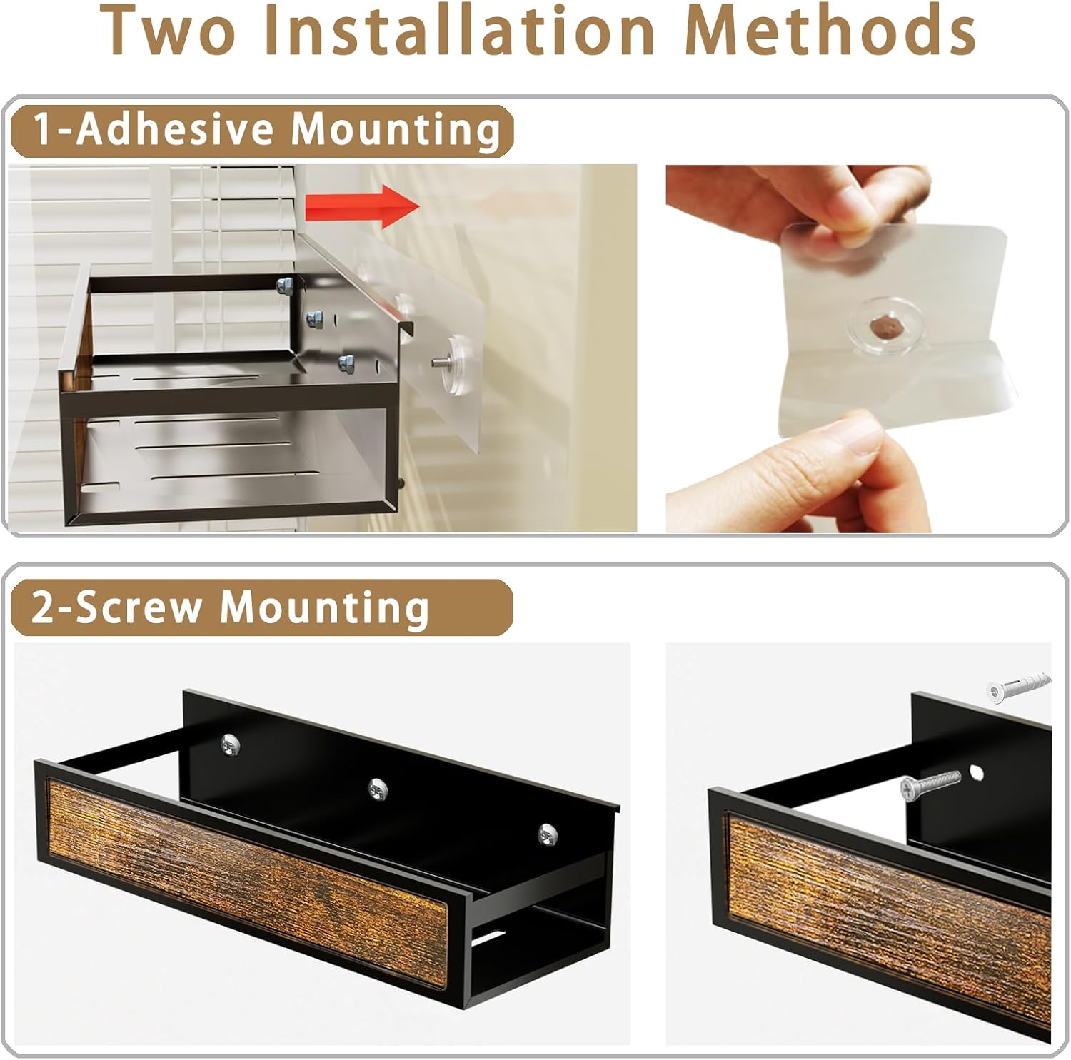 - 【Easy Installation】Rouranb spice rack wall mount has two installation methods, making installation much easier! Method 1: You can stick it directly on the wall with an adhesive panel. Method 2: Use screws to install by drilling holes. The spice rack organizer can be installed on the wall above the stove, on the wall of the countertop, inside the cabinet door, and in the RV. Not only can wall spice rack save space, but it can also display the spices beautifully