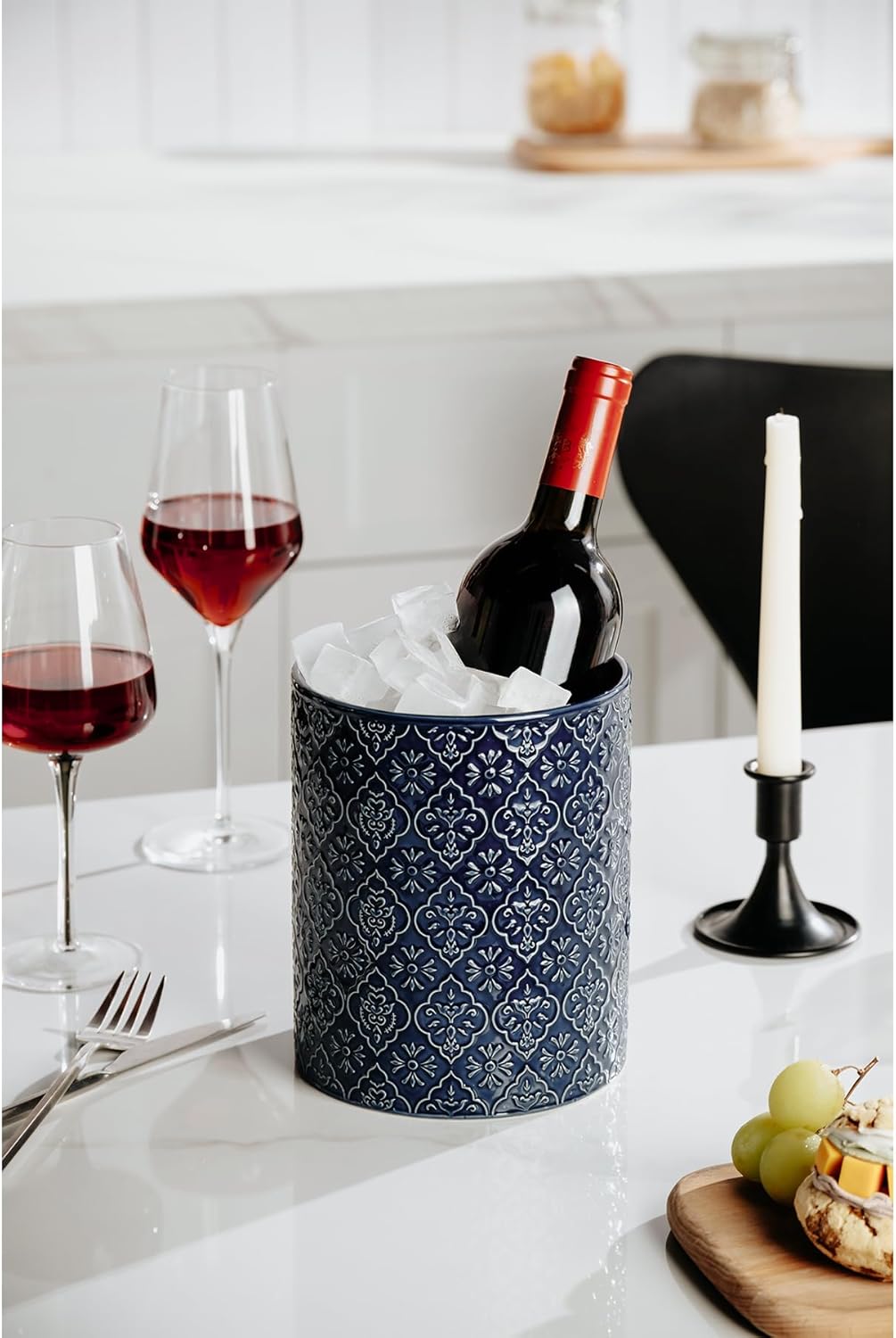 Kitchen Utensil Holder, 6x7 inch Large Ceramic Utensil Holder with Embossed Pattern, Cooking Utensil Crocks for Kitchen Countertop, Home Decor, Blue