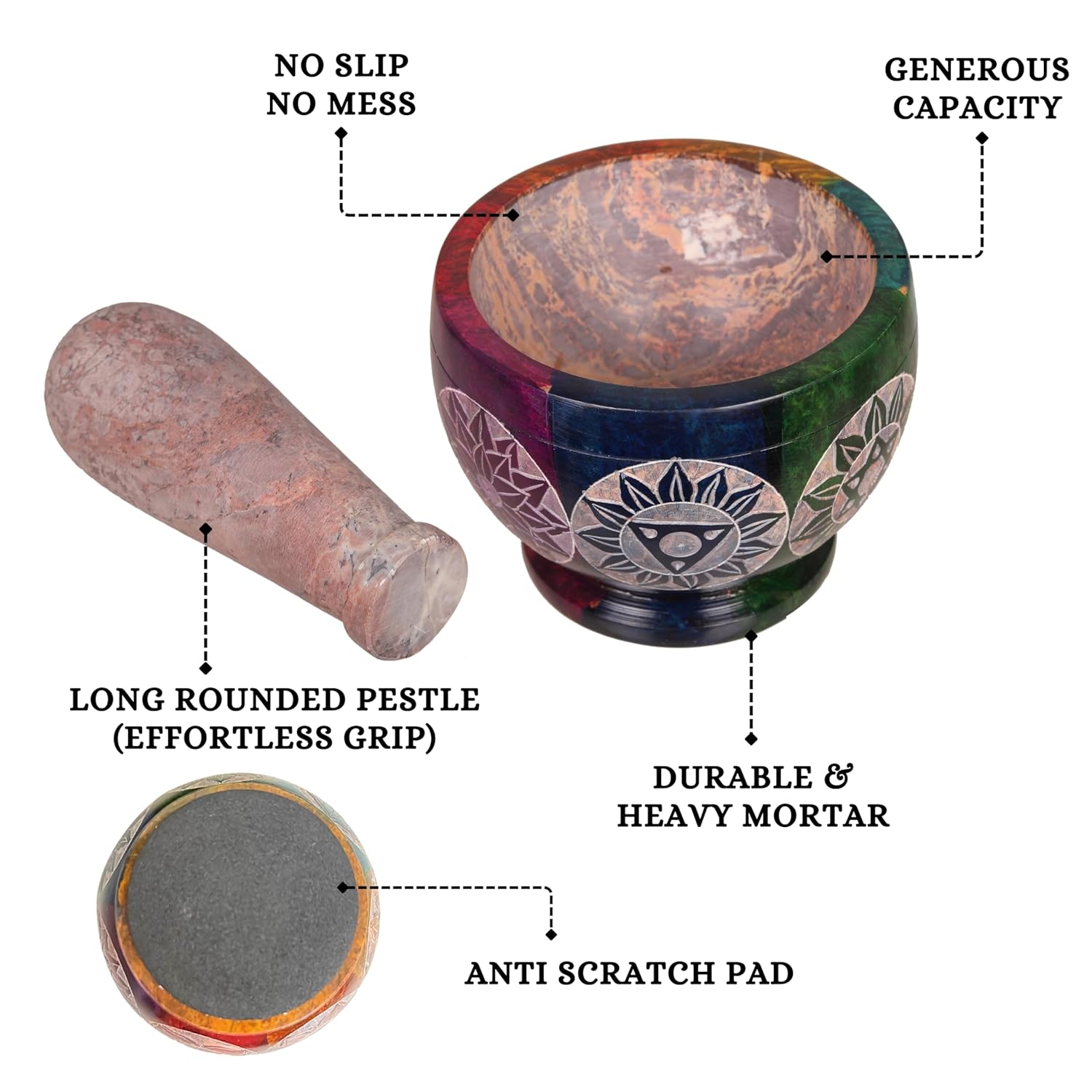Mortar and Pestle, Made of Heavy Duty Polished Hard Stone, Natural Stone Grinder for Spices, Pastes, Herbs, Seasoning etc. (Rainbow)