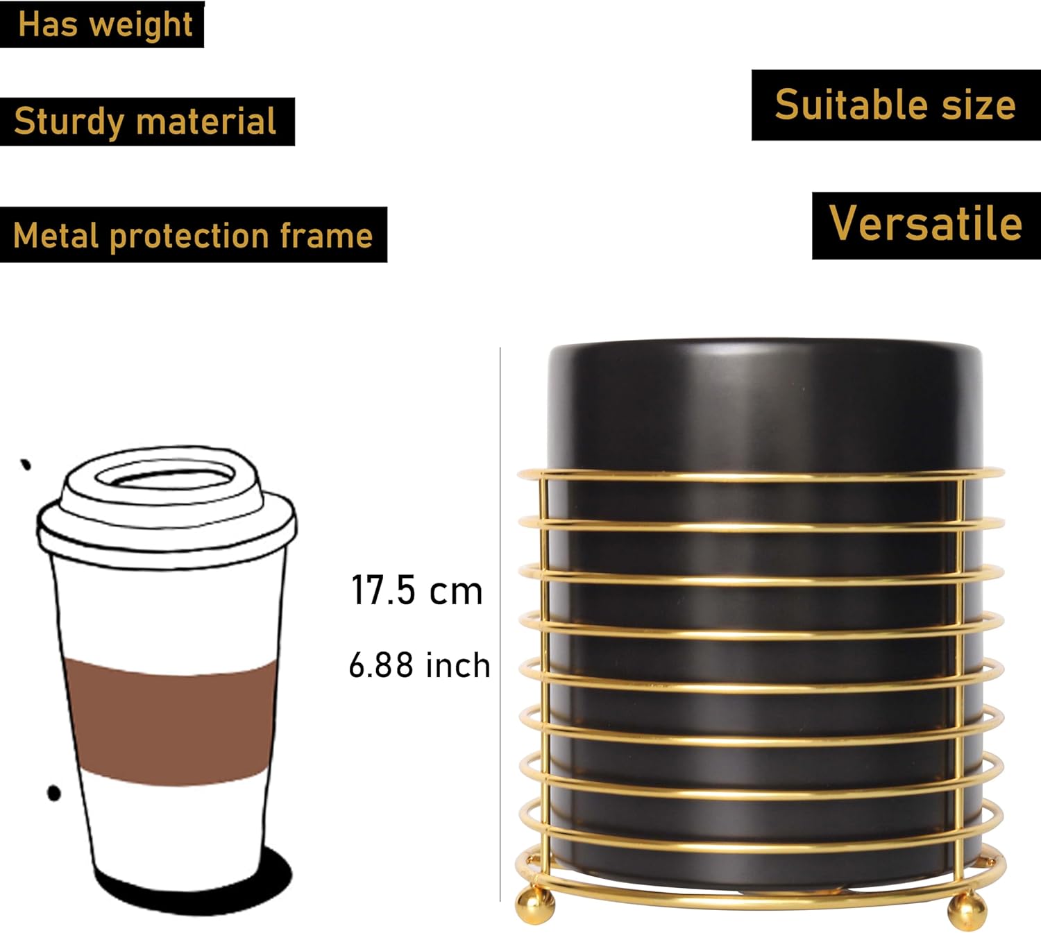 Dining Utensil Holder Cooking Utensil Holder,Gold Ring Metal Frame and Black Ceramics