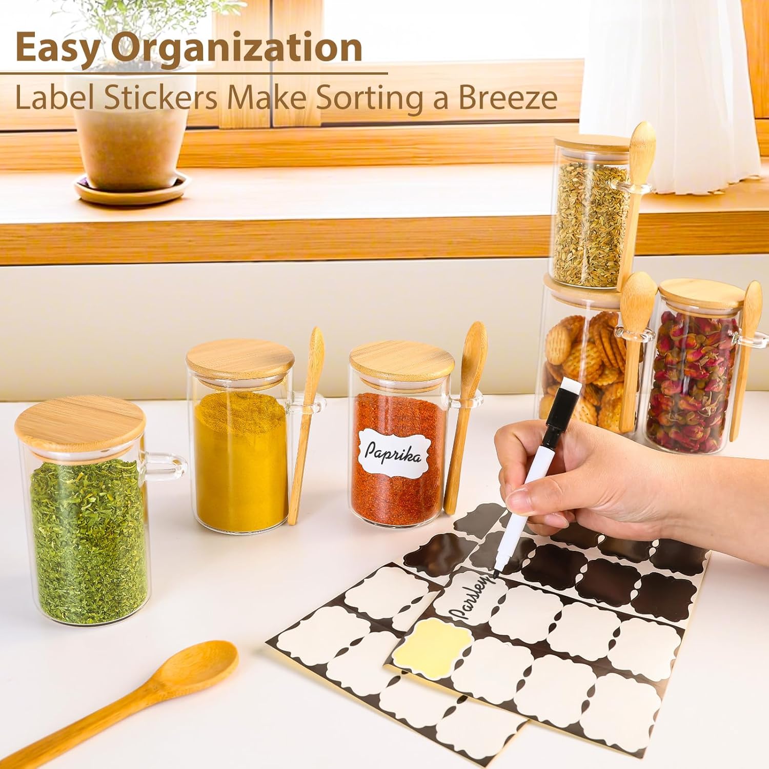 - Bonus Labeling Kit Included: Includes black-and-white blank spice labels—ready for custom naming—plus 2 pens for easy writing. Easily categorize and organize your spice jars with clean, minimalist labels for a neat, modern pantry.