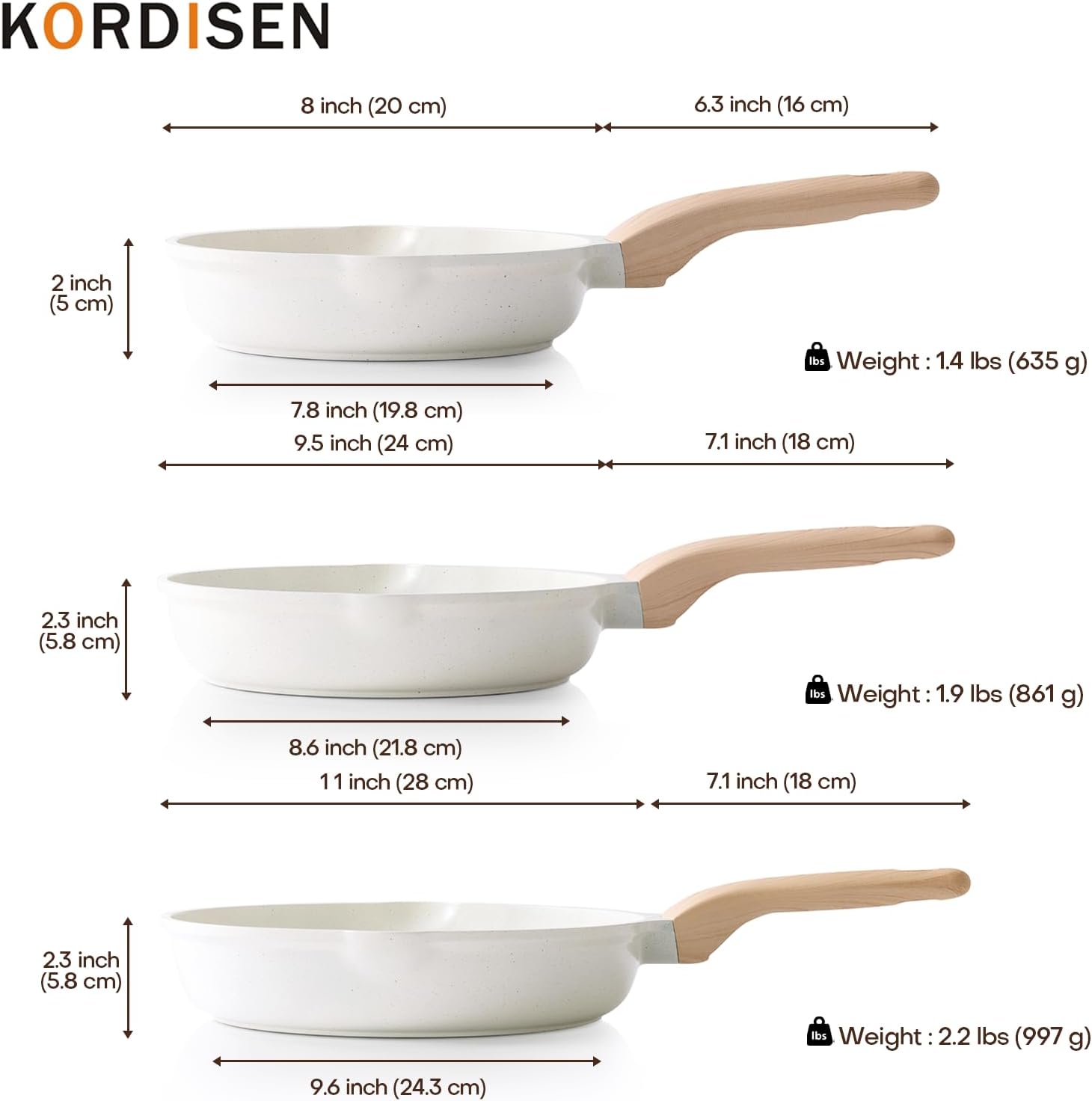 Nonstick Ceramic Frying Pan Set, 3 Piece Ceramic Skillet Set, Healthy Non Toxic Cooking Pan, Stay-Cool Handle, Induction Compatible, PFOA & PFAS Free, White