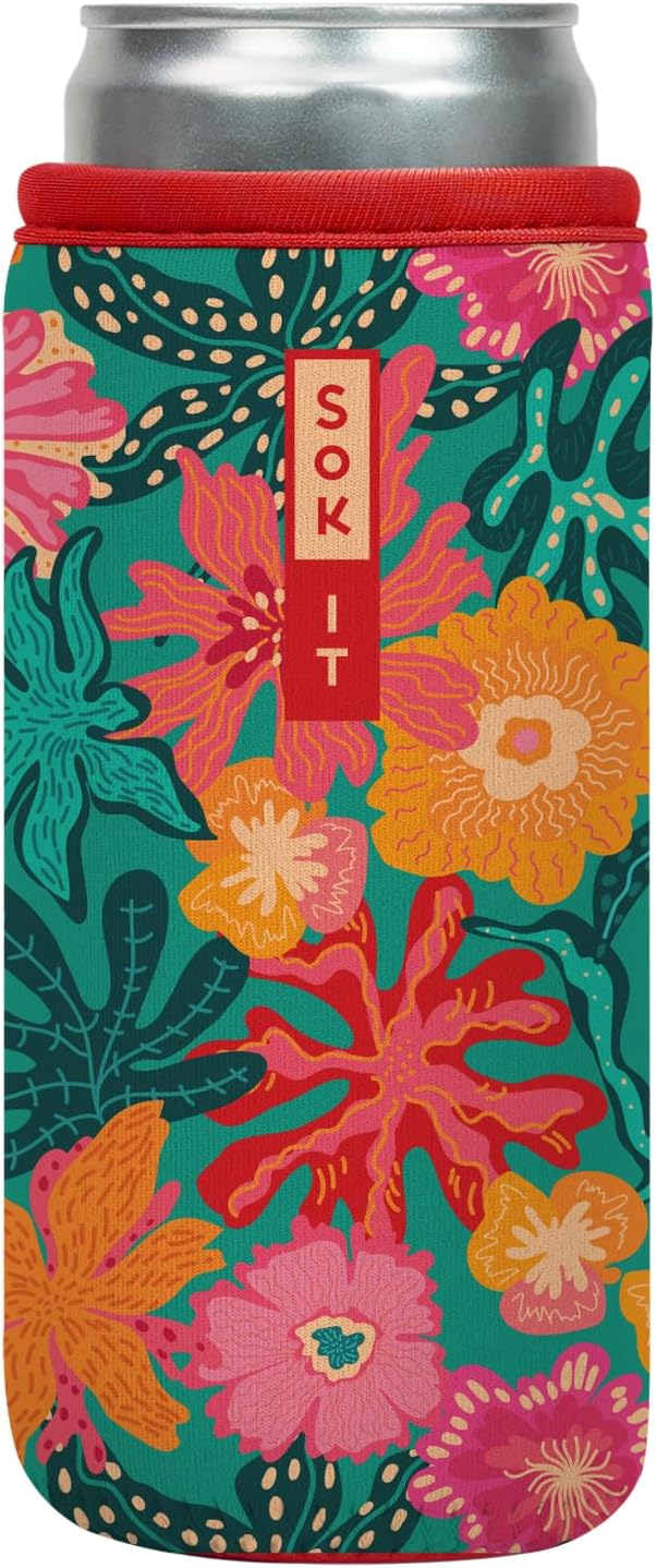 Sok It CanSok Sleeve for Beer & Soda Insulated Neoprene Cover (Tropic Like It's Hot, 12oz Slim Can Sleeve)