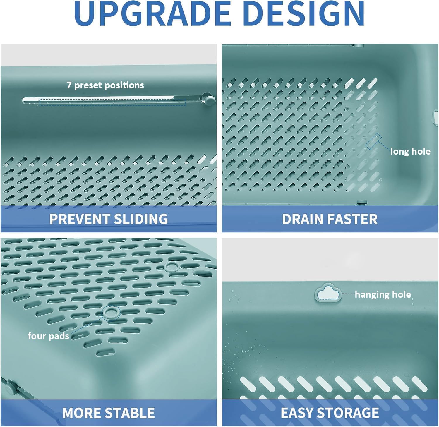 - LASSHSWA upgrade the colander, 7 preset positions - PREVENT SLIDING, long hole - DRAIN FASTER, four pads - MORE STABLE, hanging hole - EASY STORAGE.