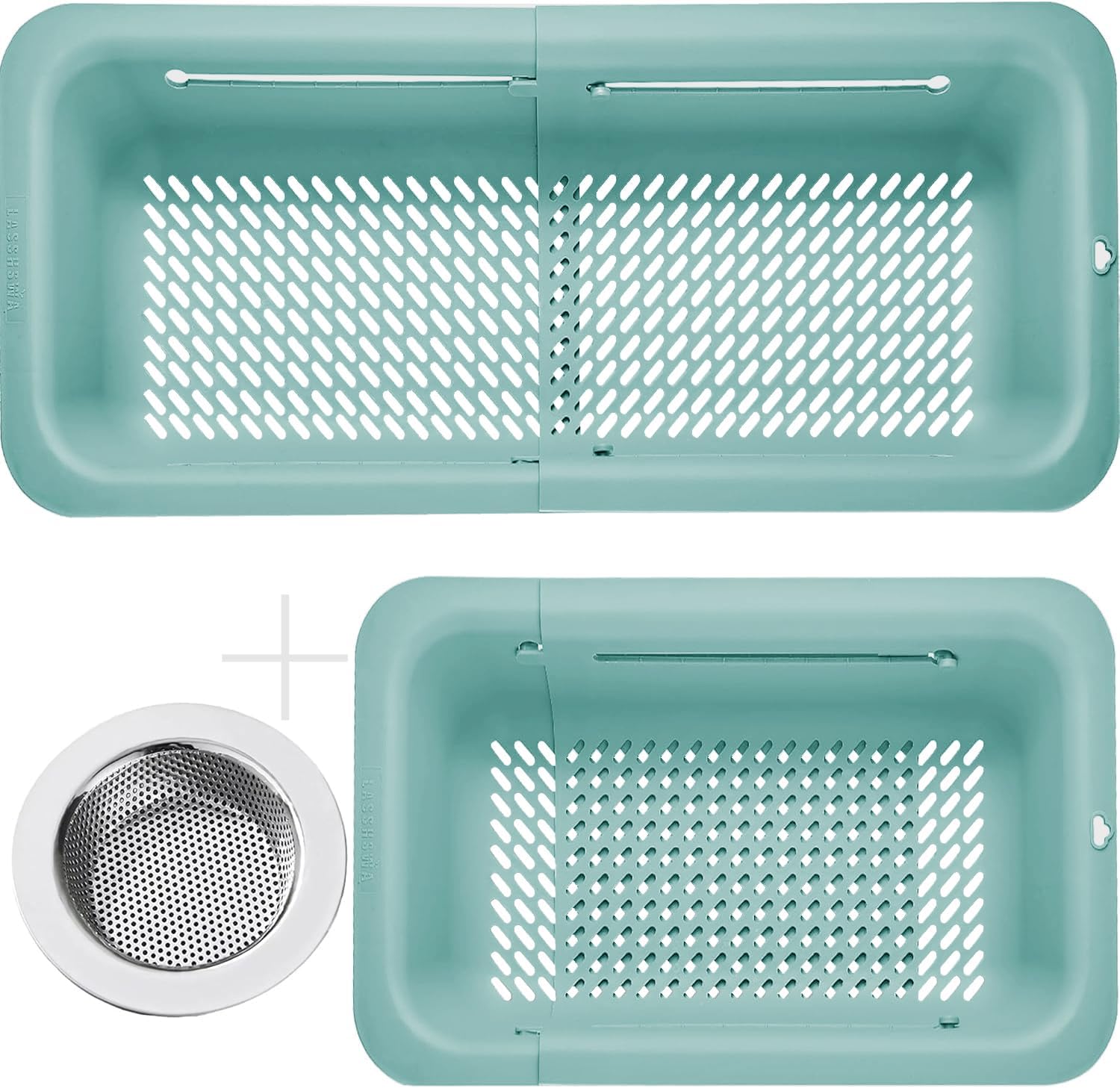 - LASSHSWA Over the sink extendable strainer, SIZE: 13-19 in (smaller space-saving design) . Stainless steel drain strainer, SIZE: Outer diameter: 4.5β; inner filter: 3β; depth: 1β . They fit for most kitchen sinks and drains.