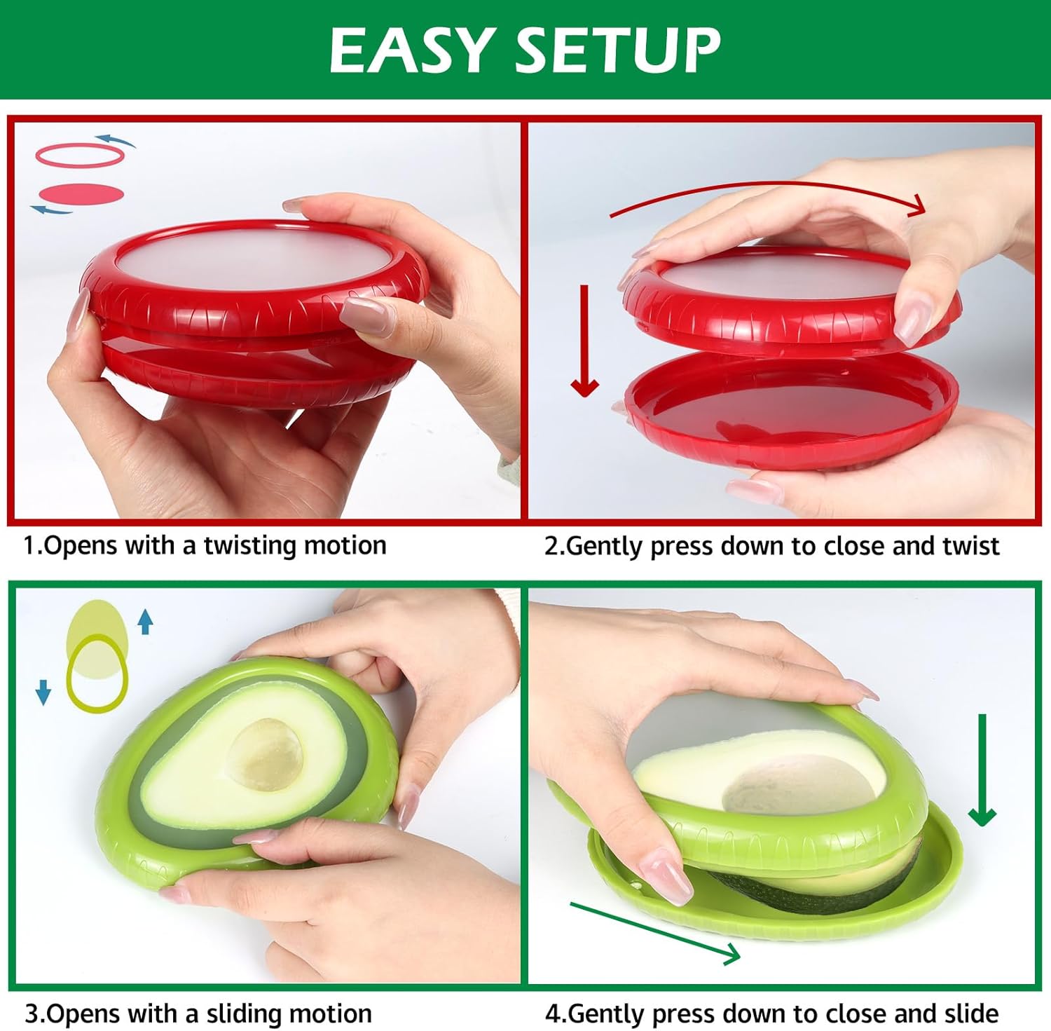 - Versatile Storage Containers: perfect for storing half an avocado, tomatoes, lemons, onions, grapes, strawberries, and various veggies, fruits, cheese.Convenient for a quick vitamin boost at the office, in the kitchen, at a restaurant, or while camping by tossing them in your backpack or tote bag