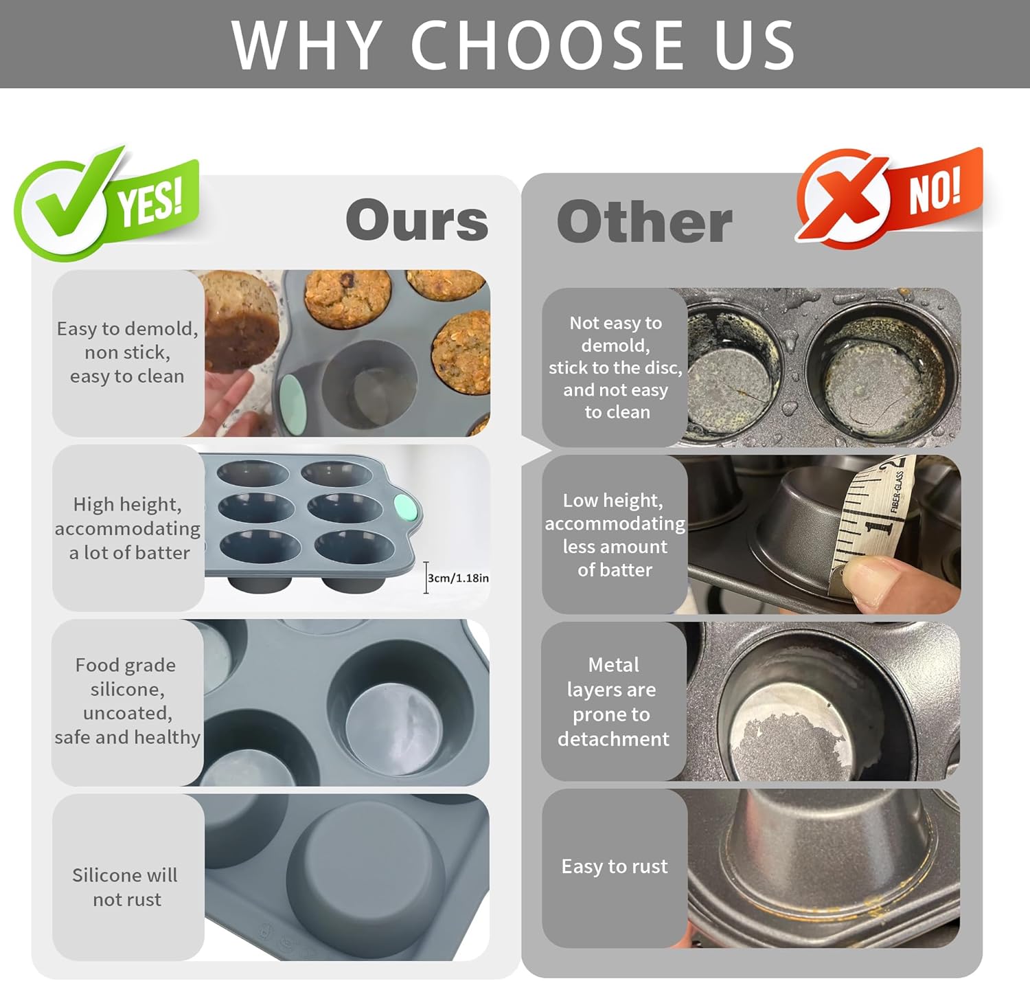 - Non-Stick & Easy Cleanup - Smooth silicone surface allows effortless release without oil or liners. The trays are dishwasher safe or easy to hand wash, saving you time and keeping them looking like new.