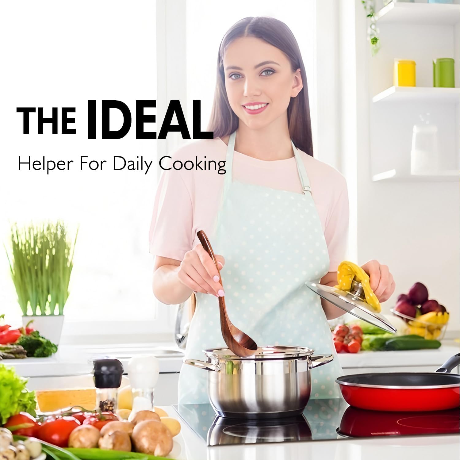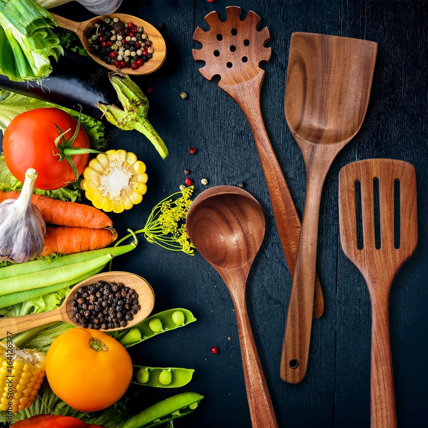 - 【Natural Wood】Wooden kitchen cookware set, handmade natural teak, environmentally friendly and harmless. It is one of the most durable woods, stronger and more durable than silicone spoons and bamboo spoons (Natural wood may have color differences, which is normal)