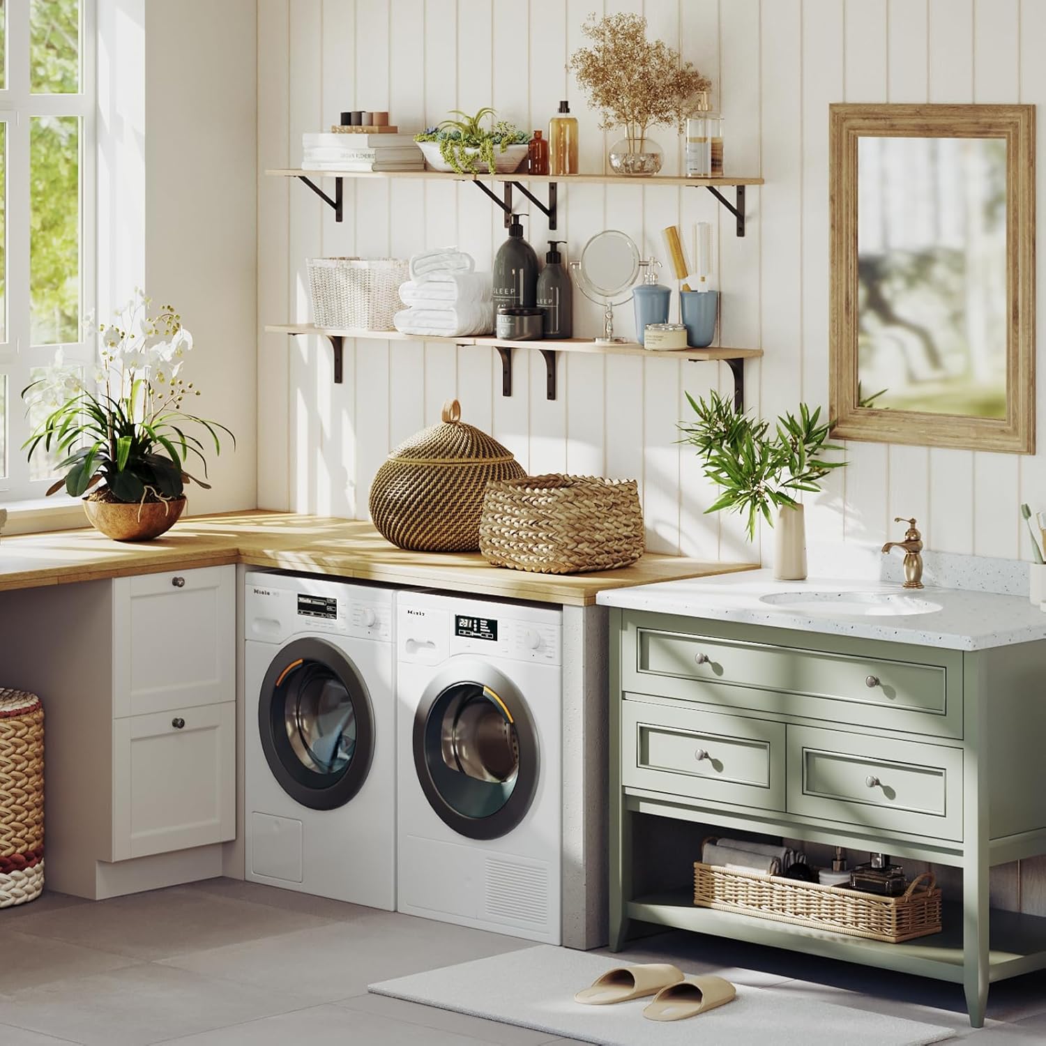 - ăWide ApplicationăThe shelves for wall storage is gospel of small family to enjoy the tranquility of home. The large floating shelves allow you to store books, games, decorations, plants, towels, photos, etc. Creating extra storage in living room, bathroom, bedroom, closet, balcony, study, kitchen, laundry, bar area, pantry and office, etc