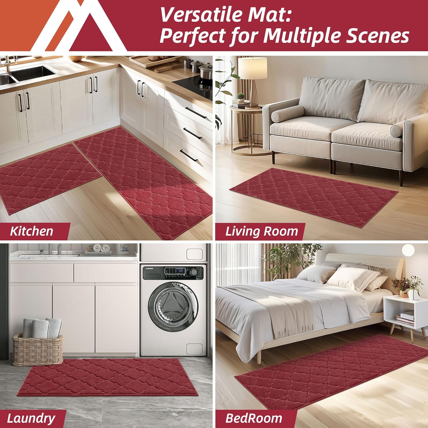 - DURABLE AND STAIN-RESISTANT: Designed for longevity, our kitchen runner rugs with the tight sewing and dense yarns provide exceptional durability,superb absorbency,stain resistance, and colorfastness.These features protect your floor from oil, moisture, sauces, or food particles, ensuring long-lasting performance even in high-traffic areas