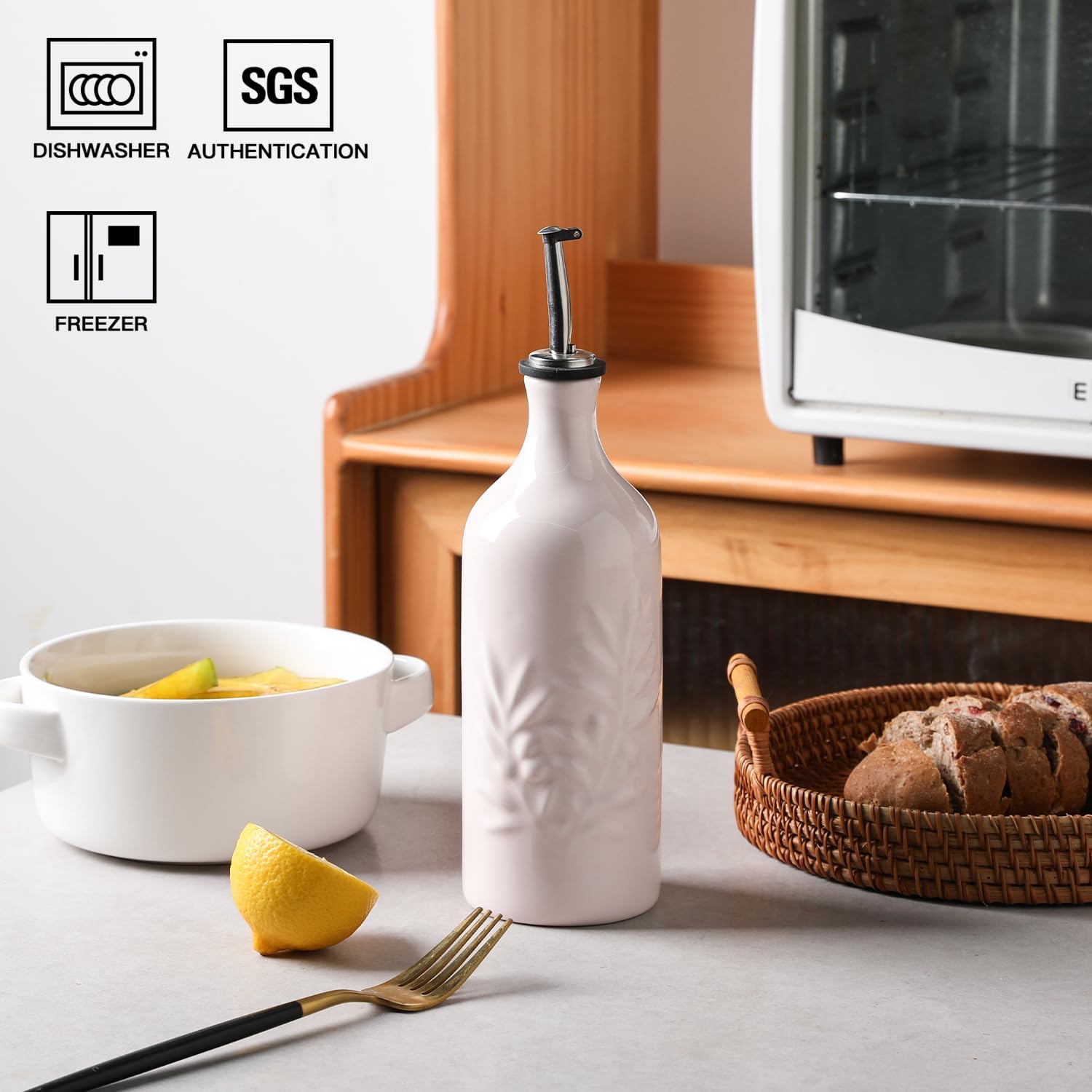 Sweejar Ceramic Olive Oil Dispenser Bottle, 20 Oz Relief Opaque Oil Cruet Protects To Reduce Oxidation, Suitable for Storage Vinegar, Soy Sauce,Liquids,Set of 1 (Rose Pink)