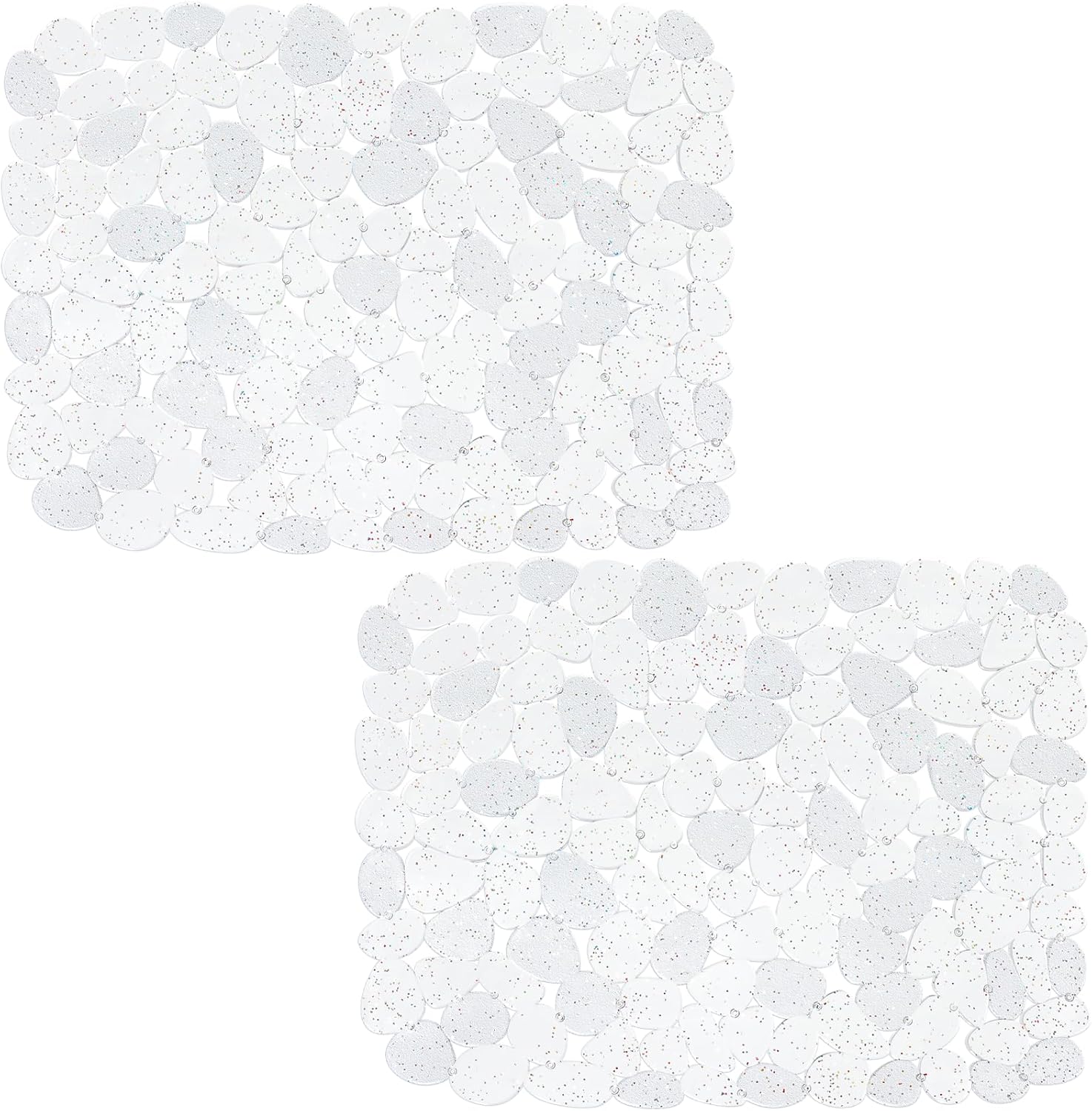 OTHWAY 2Pcs Kitchen Sink Mats, 15.7" x11.8" Scratch Free Sink Protector for Stainless Steel/Porcelain Sink, Pebble Design Quick Drain Dish Drying Mat Bling Clear