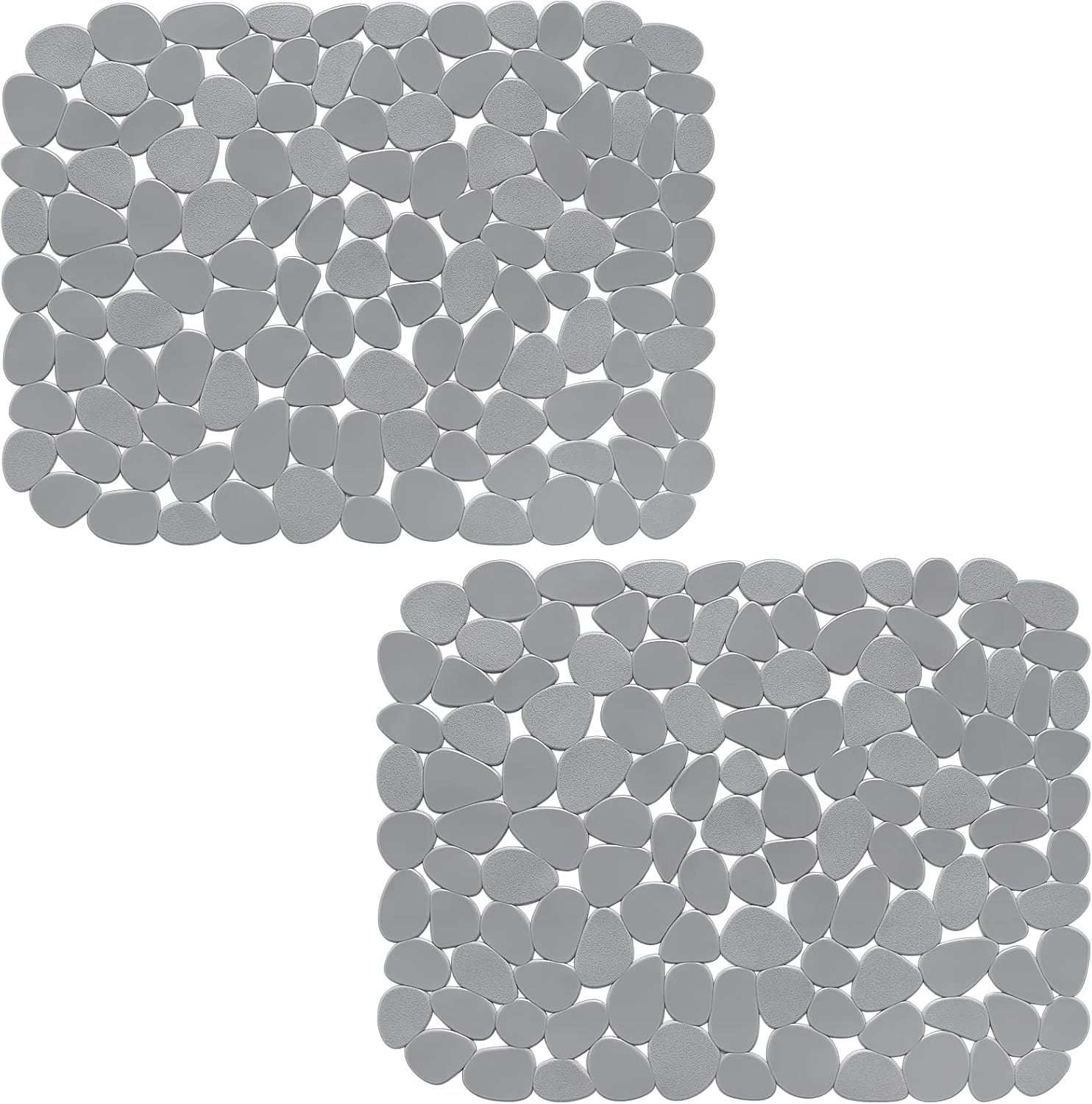 OTHWAY 2Pcs Kitchen Sink Mats, 15.7" x11.8" Scratch Free Sinks Protector for Stainless Steel/Porcelain Sink, Pebble Design Quick Drain Dish Drying Mat Solid Gray