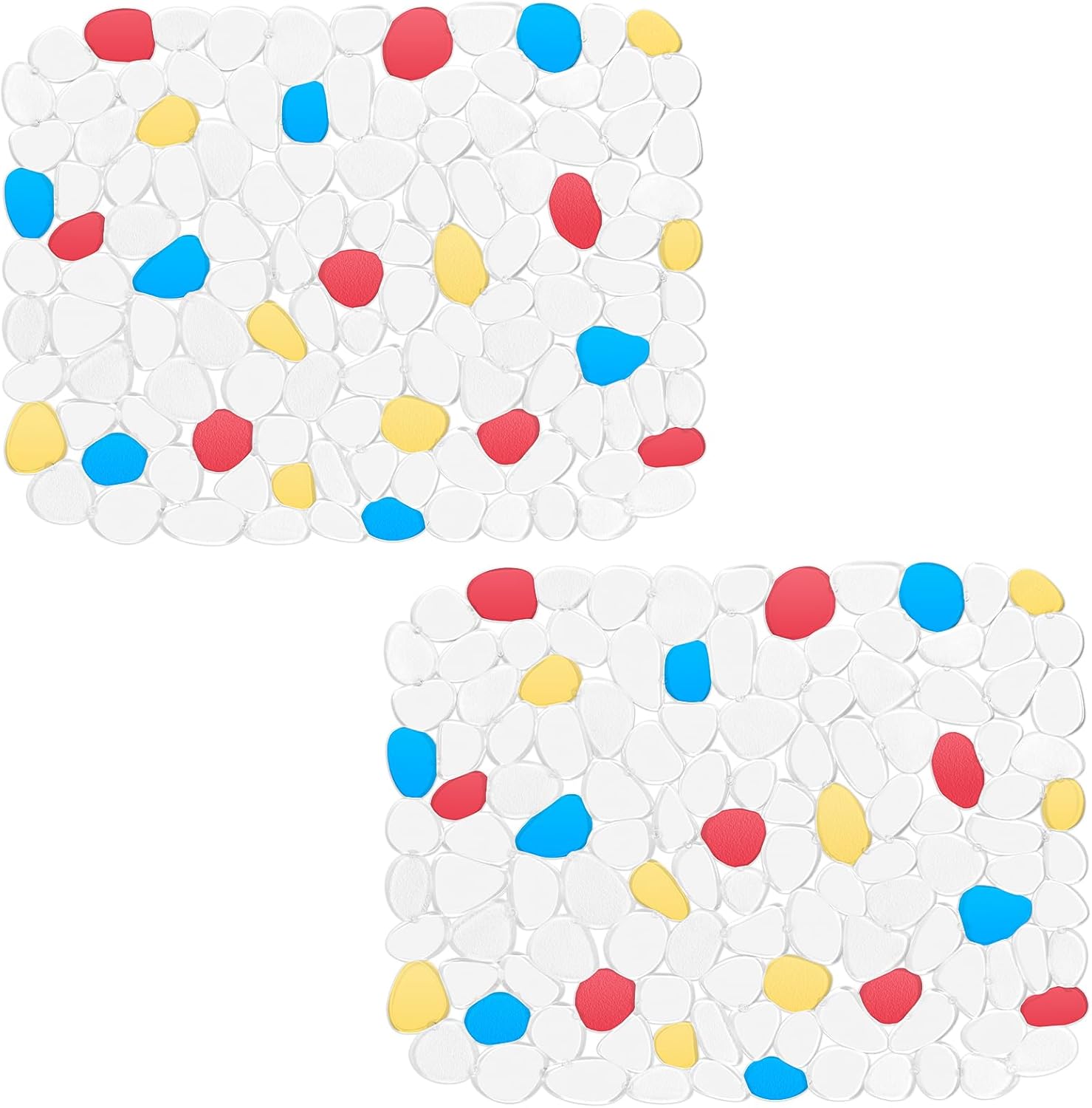 OTHWAY 2Pcs Kitchen Sink Mats, 15.7" x11.8" Scratch Free Sink Protector for Stainless Steel/Porcelain Sink, Pebble Design Quick Drain Dish Drying Mat Handpainted-Clear
