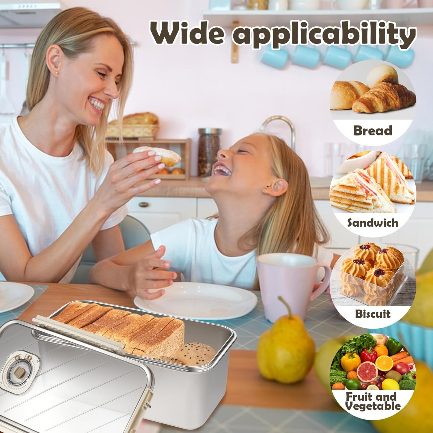 Bread Box for Homemade Bread, Time Recording Bread Storage Container with Lid, Airtight Fresh Bread Holder bin For Kitchen Countertop, Dishwasher Safe