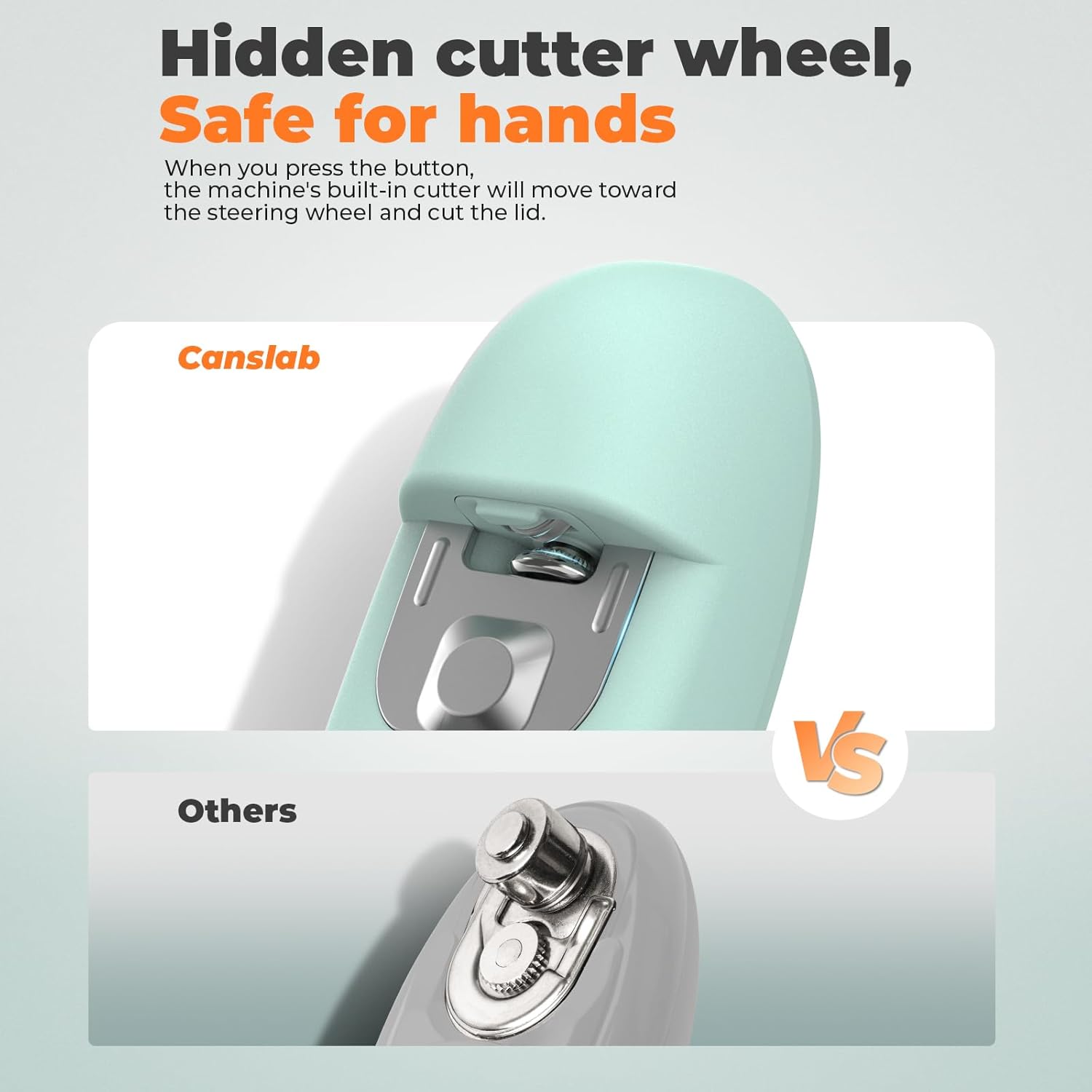 - 【Suitable for Small and Lager Cans 】- Canslab Can Opener Electric is a portable must-have kitchen gadgets. It fits practically any sizes can (not for rimless soda cans) , and gives you the best hands-free experience when preparing food. Hands-free operation are particularly beneficial for the seniors with arthritis or anyone facing challenges gripping, one-handed and left handed folks, or anyone searching for a more quicker way to open cans.