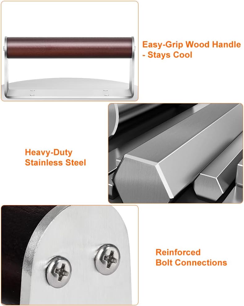 - 【RELIABLE GRILLING TOOL】 Perfect for smash burgers, crispy bacon, juicy steaks, and BBQ prep. This heavy-duty smasher is a must-have for home cooks and grill pros.