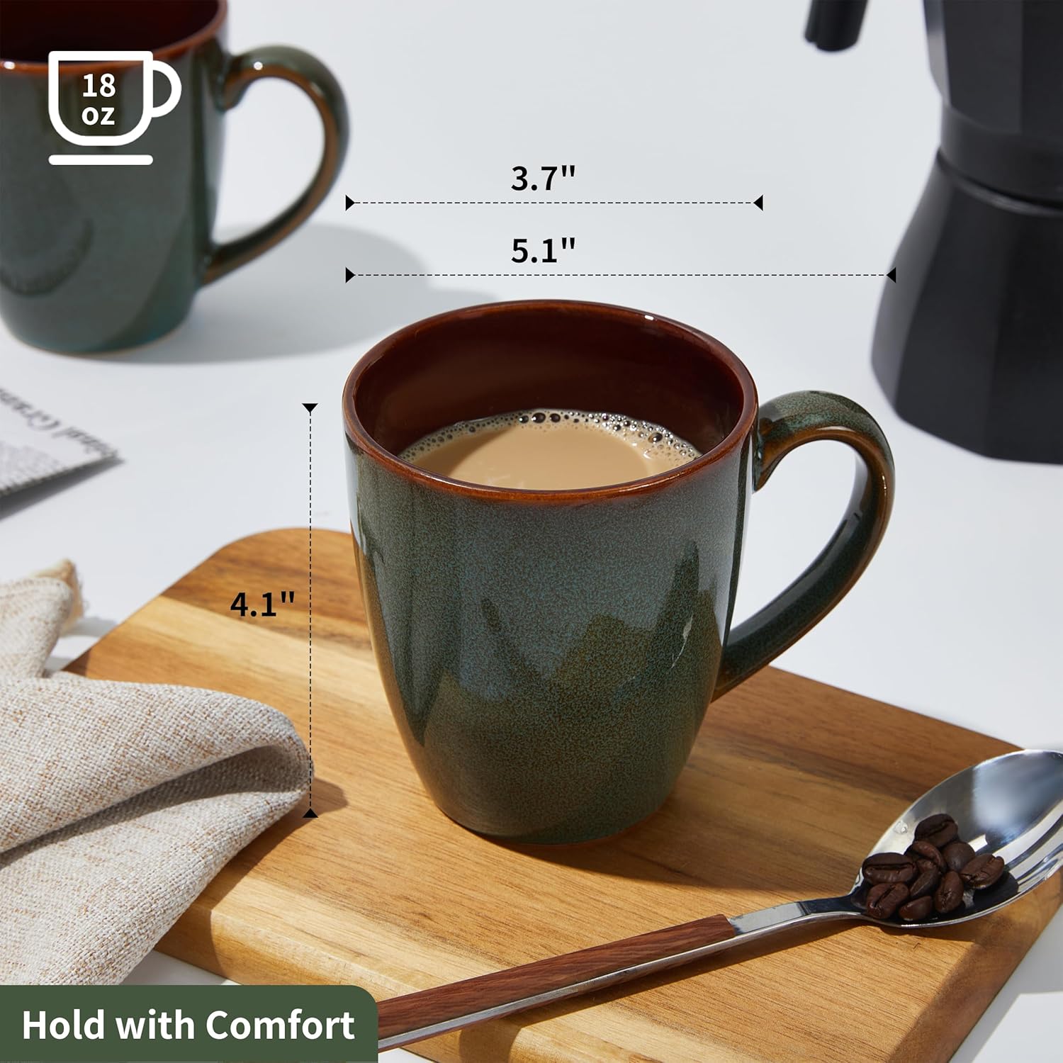 Coffee Mug 16 oz, Ceramic Coffee Mugs Set of 4, Reactive Glaze Mug for Latte/Tea/Cappuccino, Large Stackable Mug Set for Men, Women, Dad, Mom, Dishwasher & Microwave Safe, Brown Green