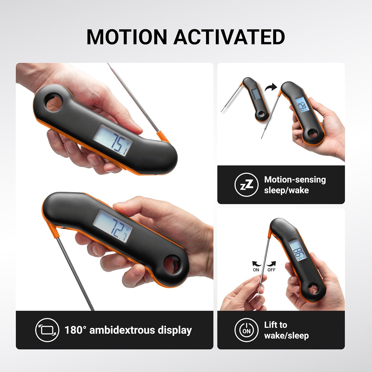 Professional Meat Thermometer, Instant Read in 0.5 Sec, NIST Certified Accuracy ±0.5°F, IP67 Waterproof, Ambidextrous Backlight, Auto-Rotating Display, for BBQ/Grill/Cooking, Black&Orange