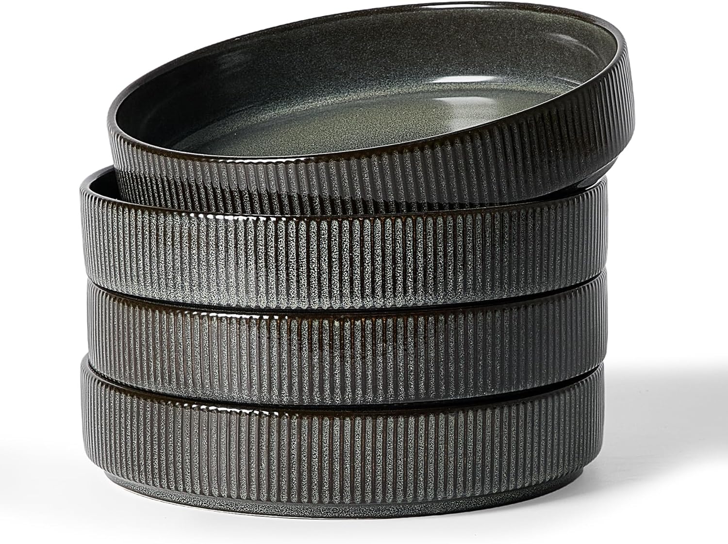 famiware Star 8.25" Pasta Bowls, Large Dinner Bowls Set of 4, Salad Bowl Plates, Shallow Bowls for Eating, Deep Forest