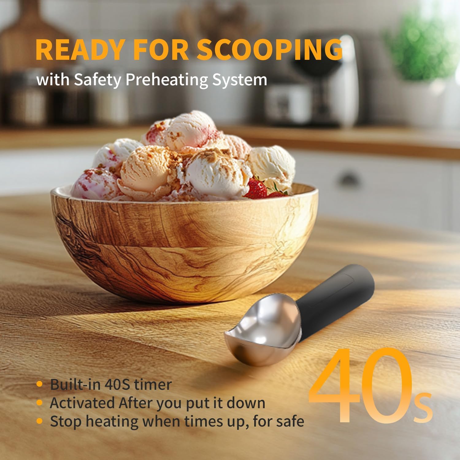 Heated Ice Cream Scoop, Electric Scooper for Hard IceCream, Self Warming Spoon Max to 158℉, Rechargeable Battery, Rust-Proof Metal, Easy to Clean(Black)