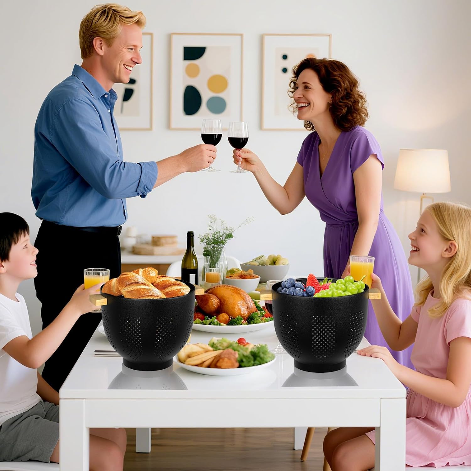 - Sturdy Base & Smart Drainage: Unlike flimsy colanders, our metal colander features a weighted, extra-wide base to prevent tipping, even when full. Effectively placed drainage holes promote airflow to keep food fresh. Thanks to the higher support base, the fruit cleaner sits securely in the sink or on the countertop, and it drains water by itself to prevent spills. It’s a kitchen must-have for family gatherings and daily cleaning of fruits, vegetables, or straining pasta.
