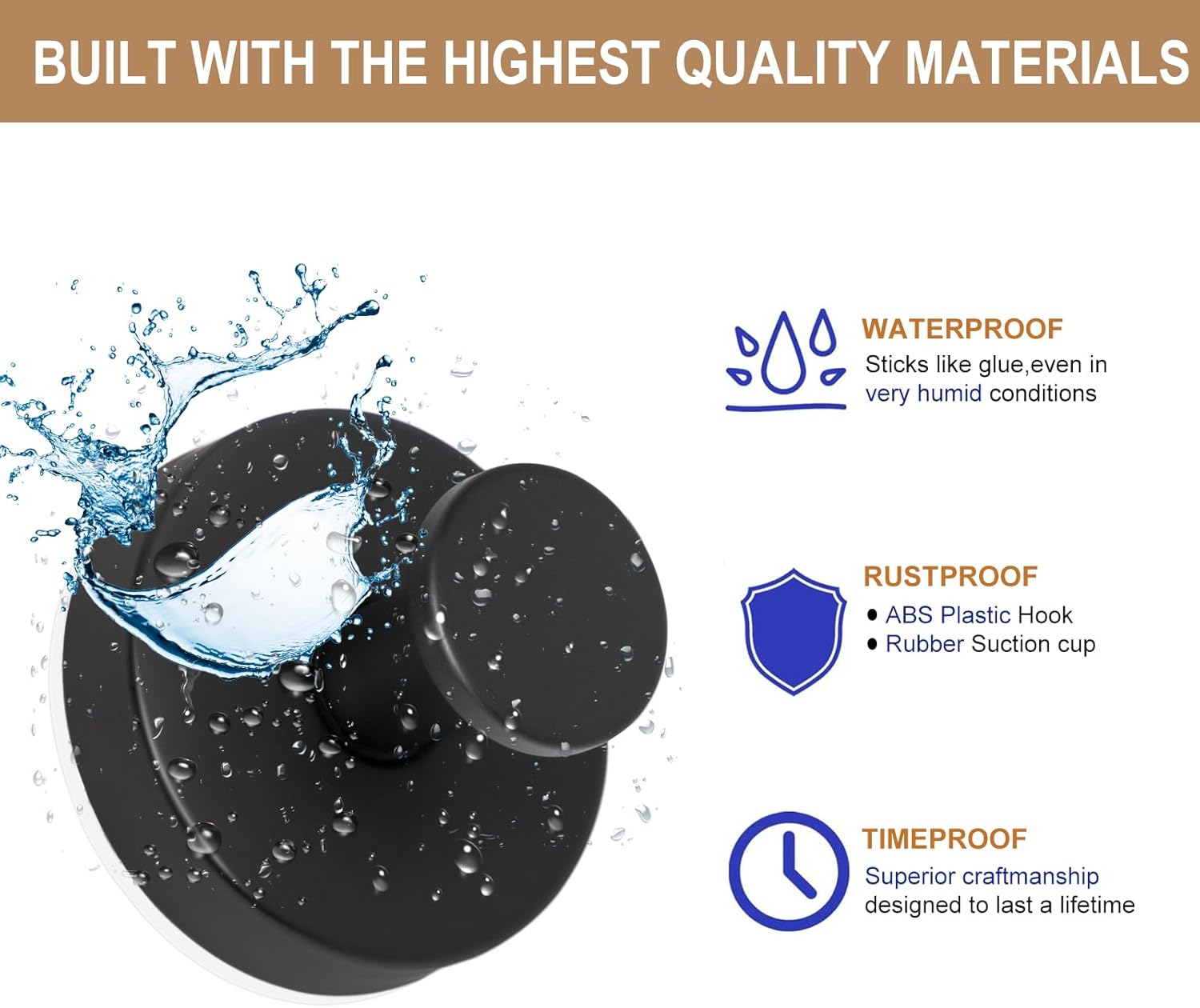ZESLMG Suction Cup Hooks for Shower Wall, Door Wreaths, Removable Inside Shower Towel Hooks for Bathroom Window Glass Kitchen- Bath Robe Loofah Suction Hooks for Hanging More Surfaces (Black, 2 Pack)