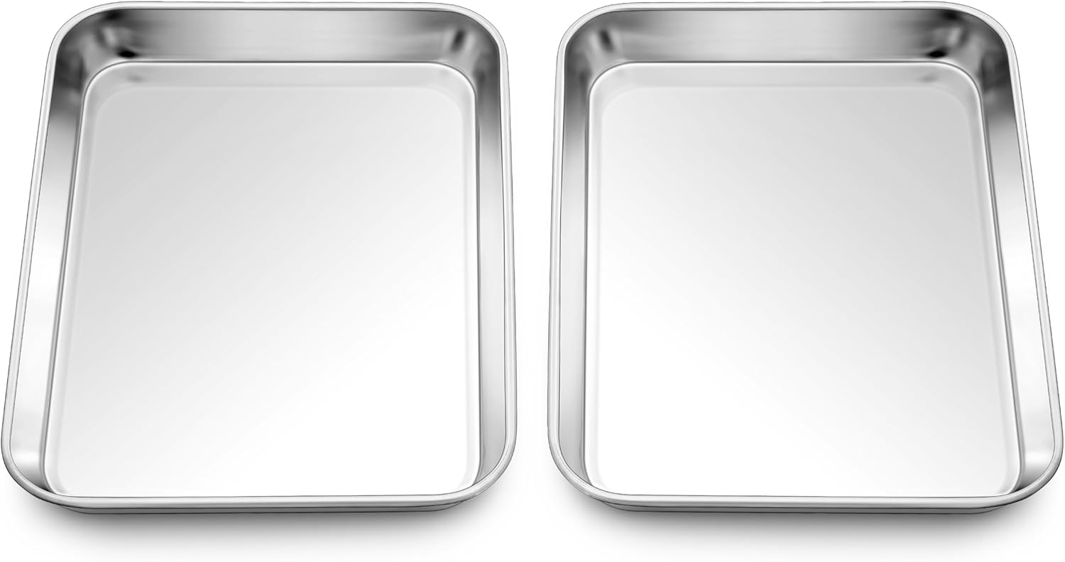 Homikit 2 Pack Baking Sheet, 9 x 7 Inches Stainless Steel Cookie Tray Set for Cooking Toasting, Mini Metal Cookie Toaster Oven Baking Pan Non Stick, Rustproof & Mirror Finish, Dishwasher Safe