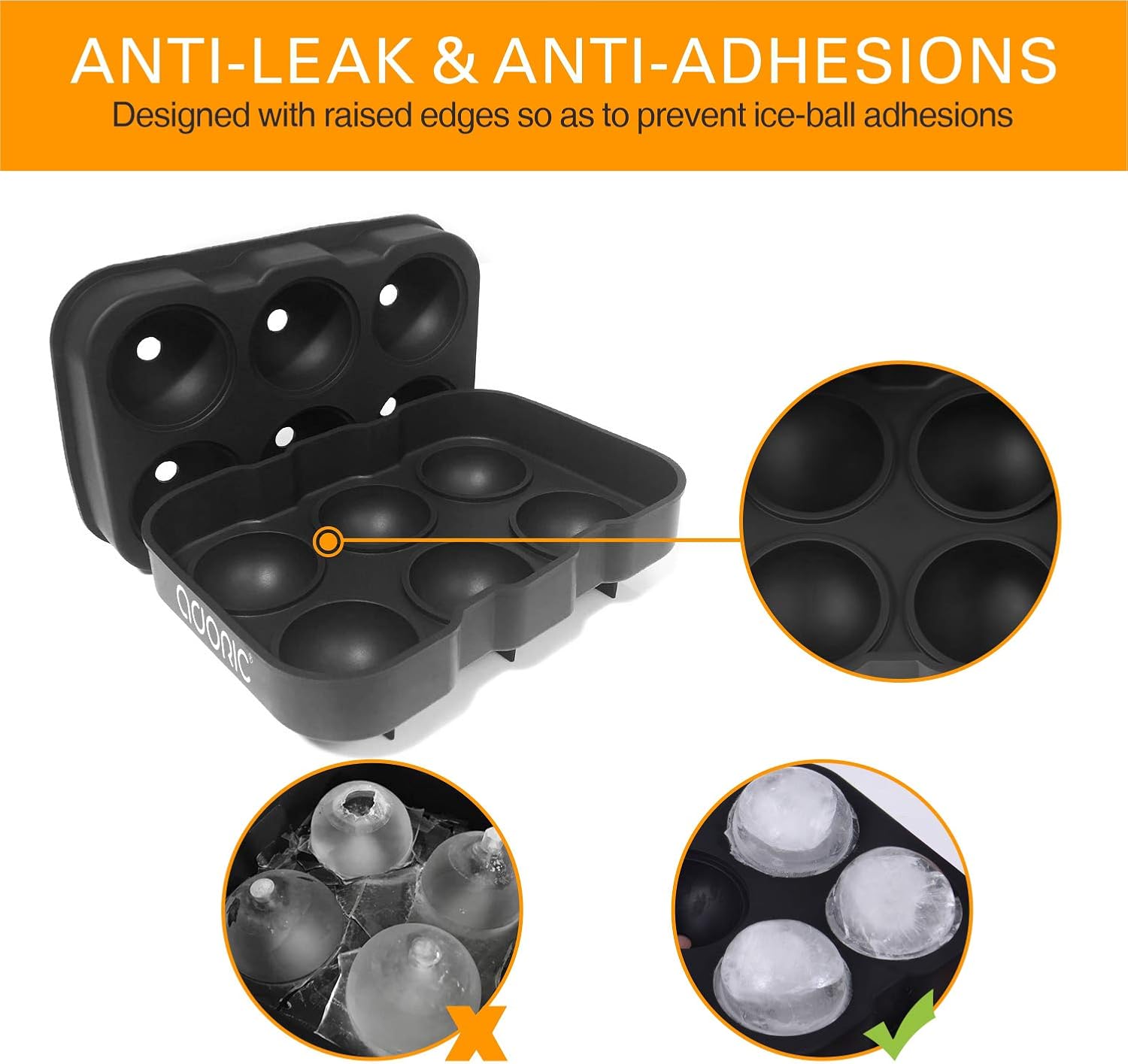 Ice Cube Trays (Set of 2), Sphere Ice Ball Maker & Square Large Ice Cube Molds, Freezer Molds for Whiskey, Cocktails, Homemade Drinks-Reusable & BPA Free