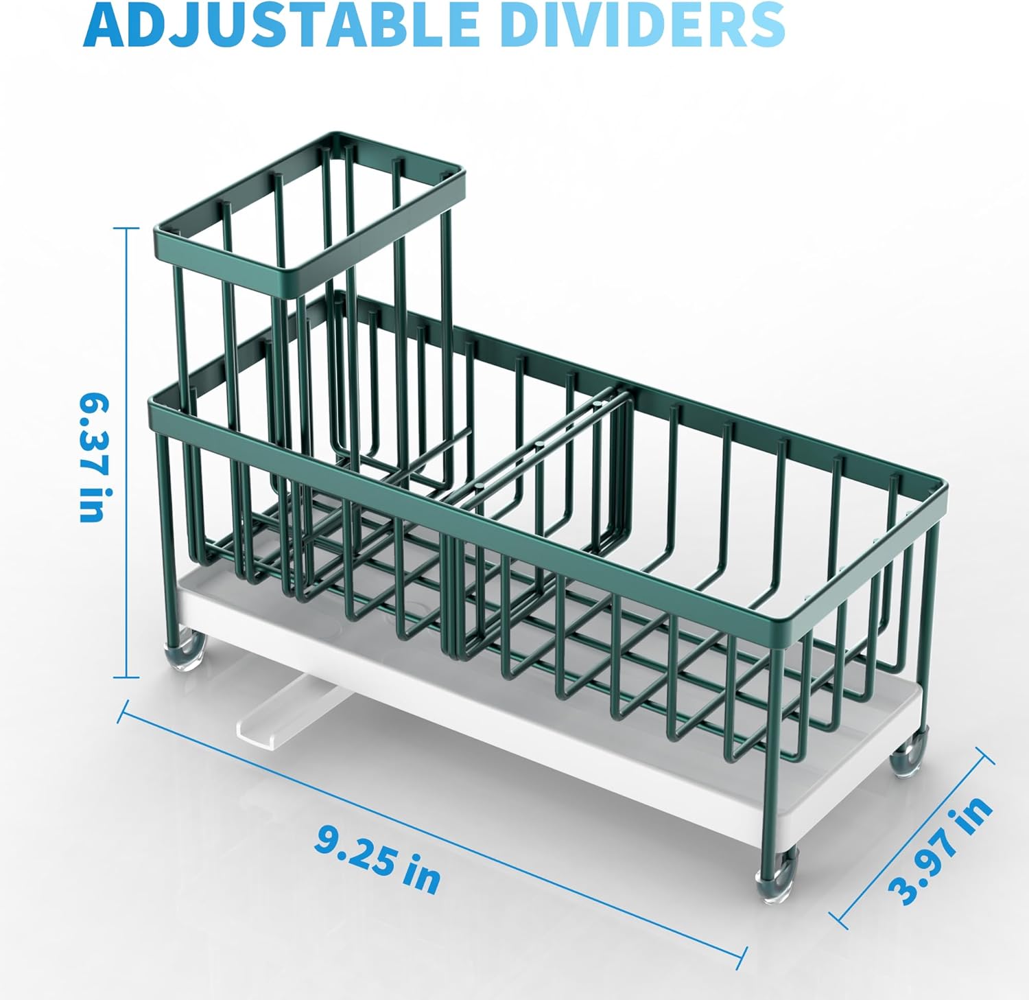 Cisily Sponge Holder for Kitchen Sink, Sink Caddy Organizer with High Brush Holder, Countertop Organizers and Storage Rustproof 304 Stainless Steel, Dark Green Kitchen Decor and Accessories