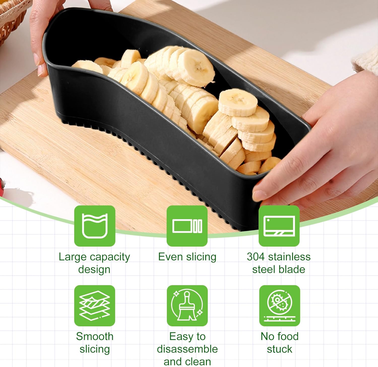 - 1.2025 New Multi-Purpose Slicer – Upgrade your kitchen with this versatile slicer, perfect for bananas, cucumbers, strawberries, hot dogs, grapes, and more! Its precision stainless steel blades (0.32in spacing) ensure evenly sliced pieces every time, making food prep faster and easier.