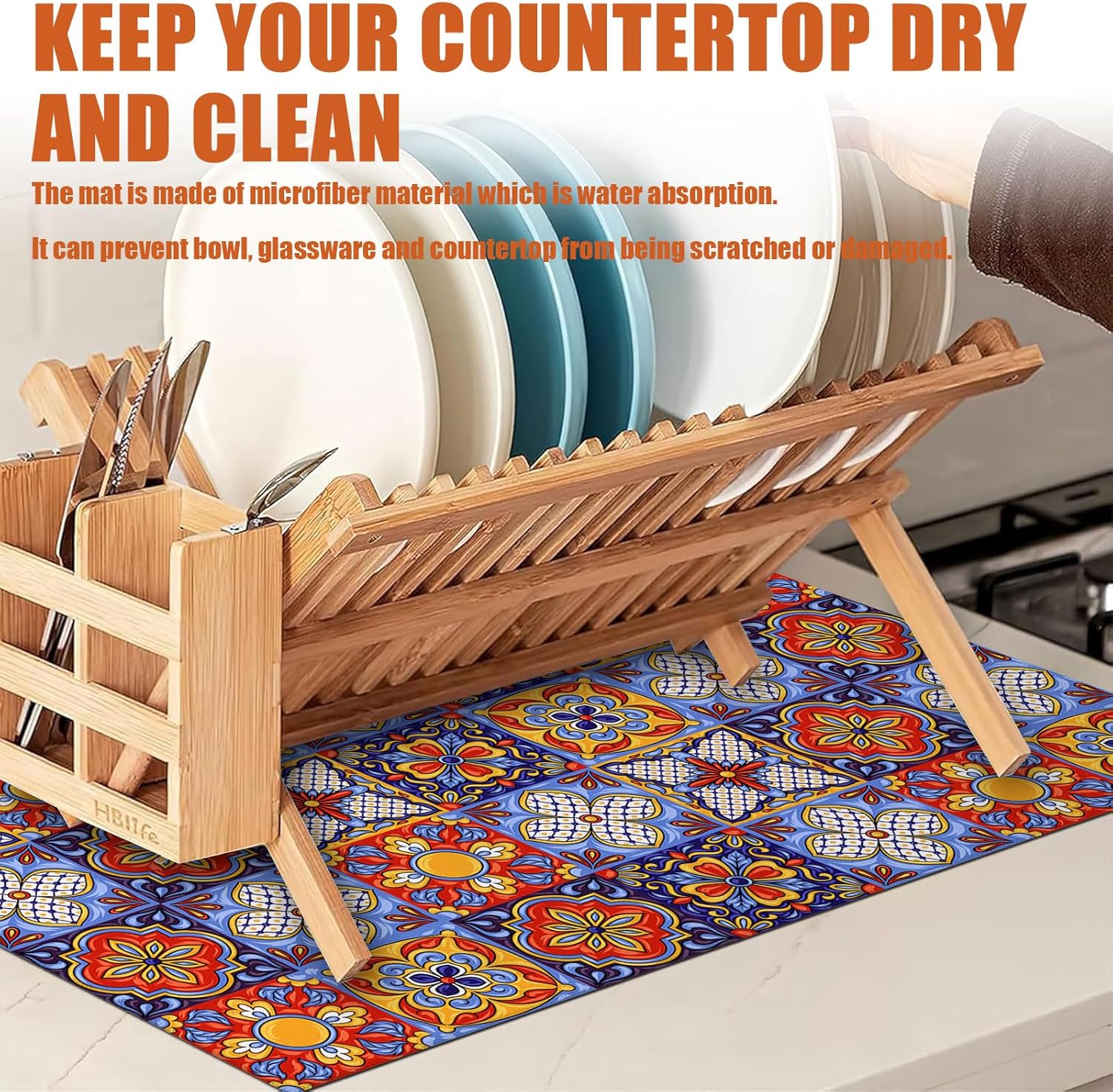 - 【Easy to Clean】The utensil drying mat can be cleaned by hand or machine to remove stains, the kitchen utensil drying mat to dry quickly without a machine. HD printed suede has excellent color lock, does not fade and can be reused many times.