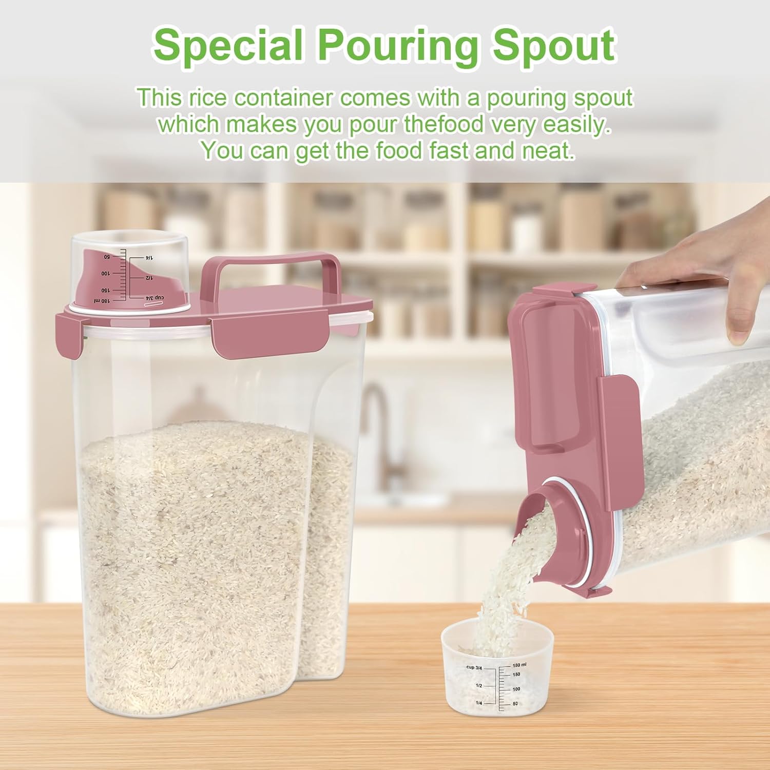 Rice Storage Container, Cereal Containers Storage, Dry Food Airtight Dispenser BPA Free, Clear Plastic Kitchen and Pantry Organization Bin (1, Rose pink, 5.28Qt)
