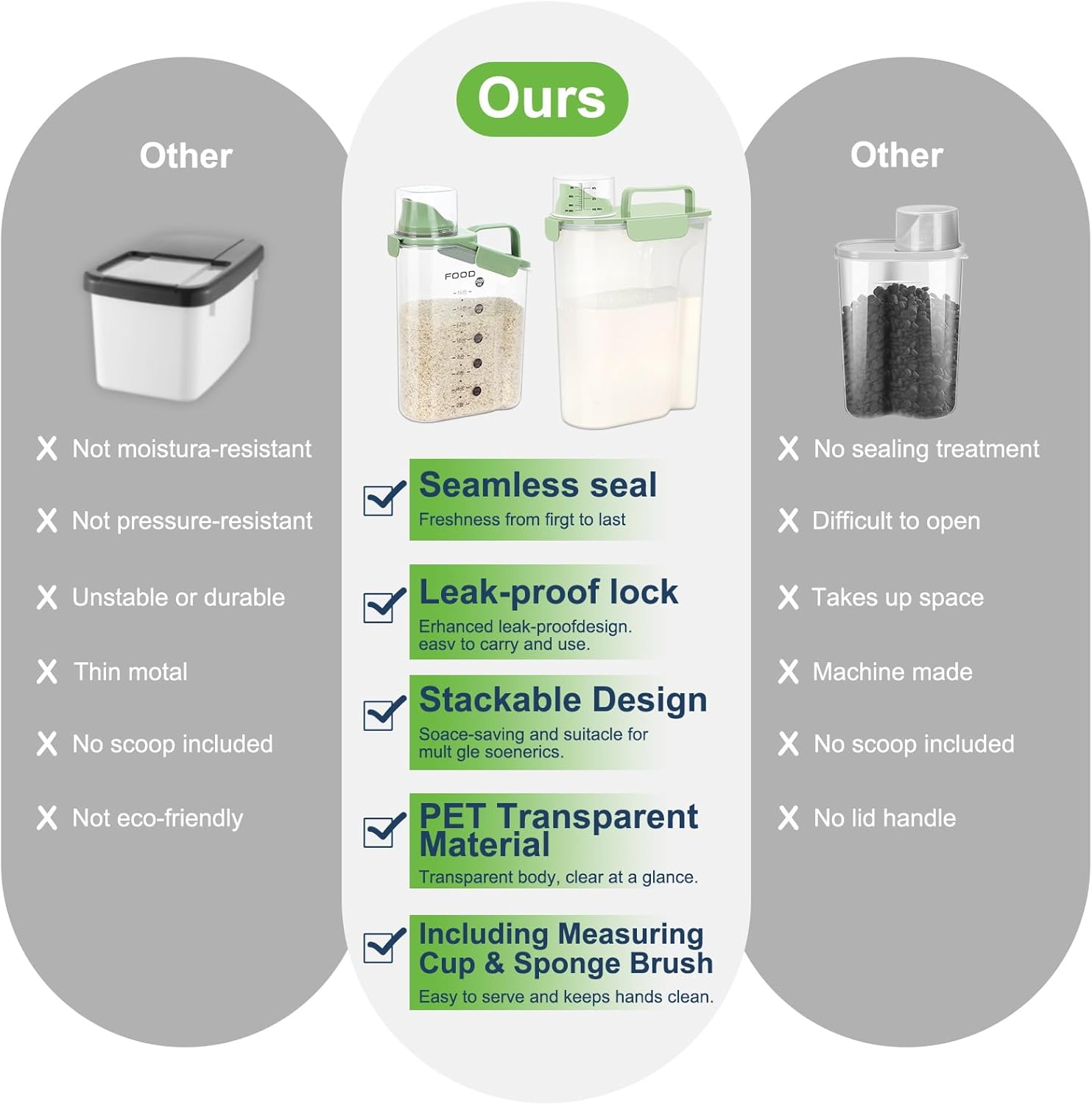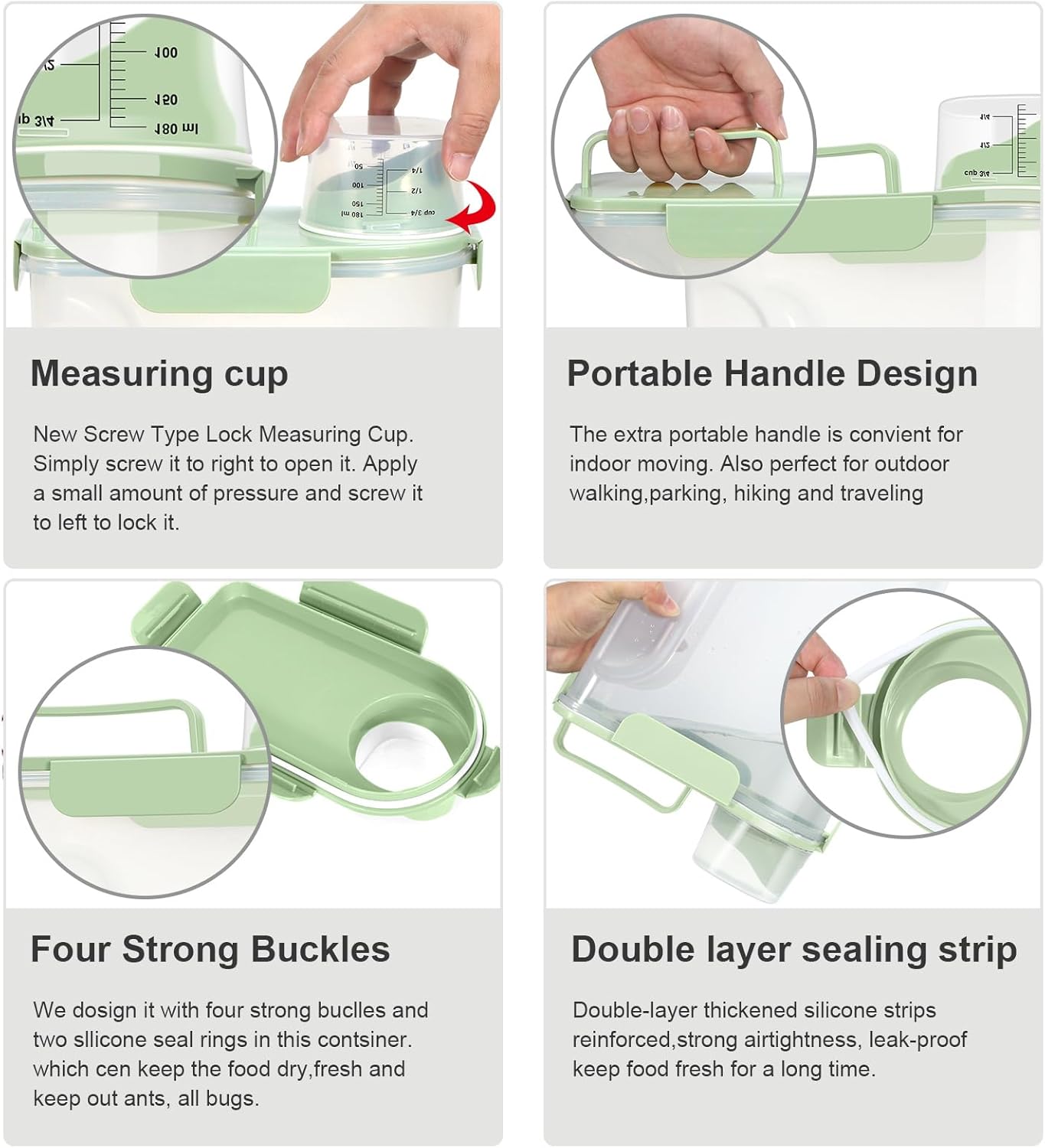 - DOUBLE-LAYER SEALED: The sealed storage system of our rice dispenser will always protect your food from moisture. Double-layer silicone strip reinforcement and four strong latches and cups with screw-type locks seal the container to keep food fresh and dry. Its moderate size and height make rational use of your kitchen space