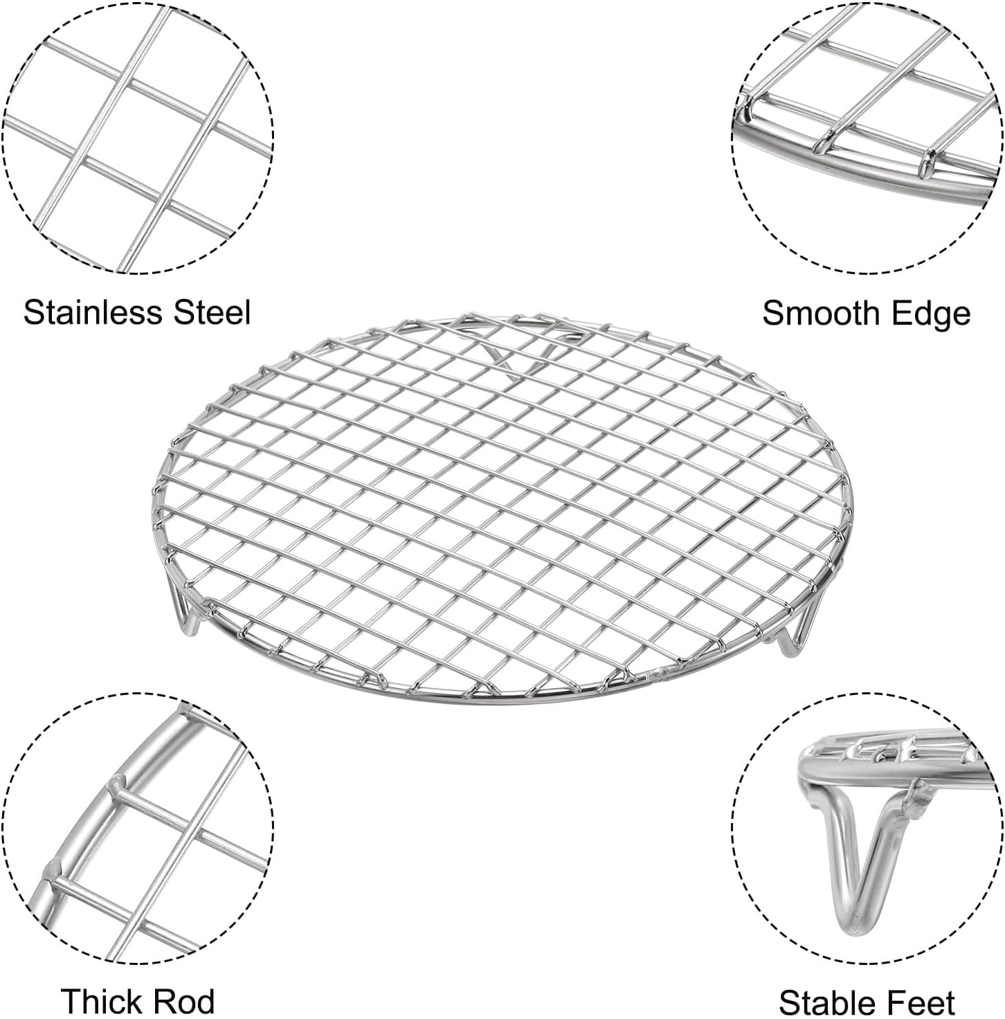 uxcell Round Cooking Rack with Legs, Dia 8.3 Inch 304 Stainless Steel Barbecue Grill for Cooking Baking Barbecue Air Fryer Racks, Silver