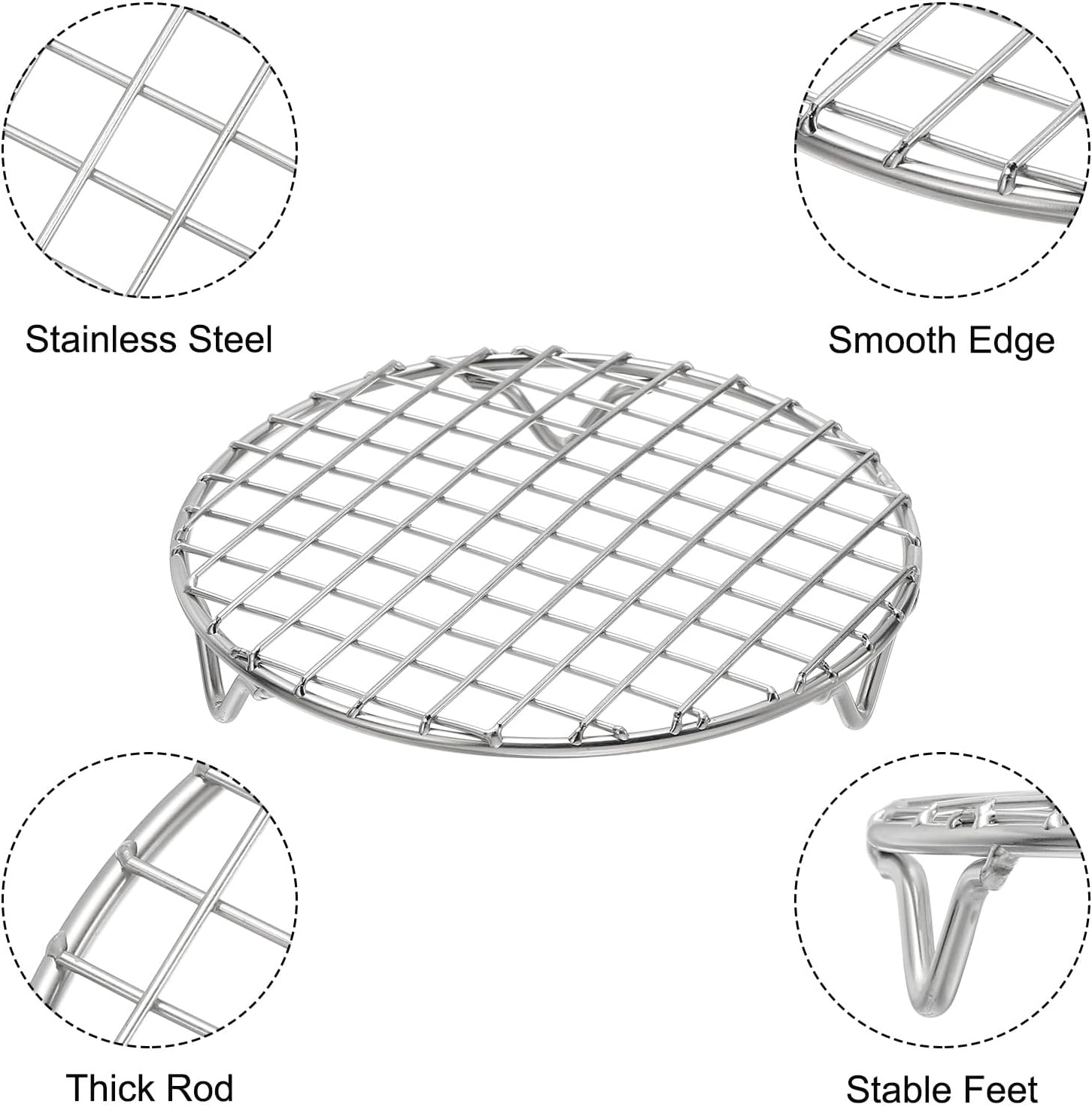 uxcell Round Cooking Rack with Legs, Dia 6.5 Inch 304 Stainless Steel Barbecue Grill for Cooking Baking Barbecue Air Fryer Racks, Silver