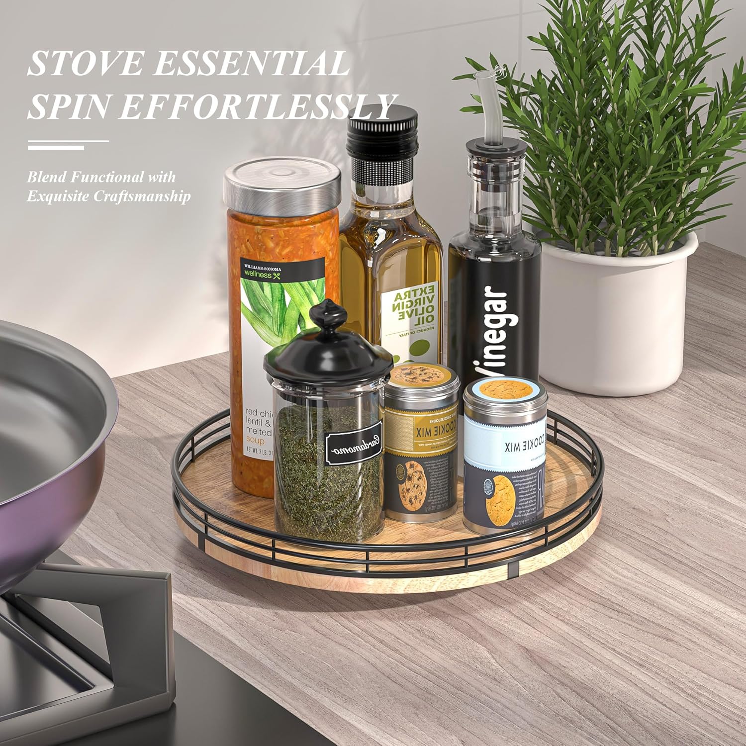 - 360 RATATING & MAXIMIZE SPACE: The base is made of solid wood and the spinning mechanism is made of steel ball bearings, which are well-built and allow for 360° smoothly spin. Making it super easy to access items at the back of your cabinet without having to remove everything in front. You can use it to store spices, condiments, and even small jars, and it keeps everything neatly in place.