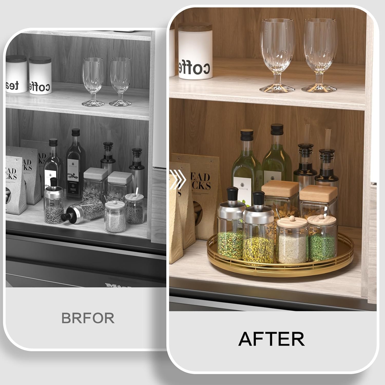 - Thoughtful Design: The turntable gold tray features a smooth and silent 360°rotation; Bottom slip-resistant pads for stability and protect your countertop from scratches; Raised edges on each organizer tray to keep items from falling out; Easy to use, no installation required