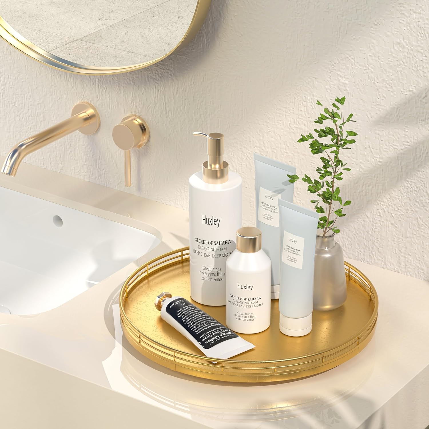 - Multi-Purpose Usage: Perfect for a wide range of occasions and spaces. Whether used as a centerpiece table decorations, a vanity tray in your bathroom, or an organizer on your kitchen, this versatile gold round tray adapts to your needs in any room