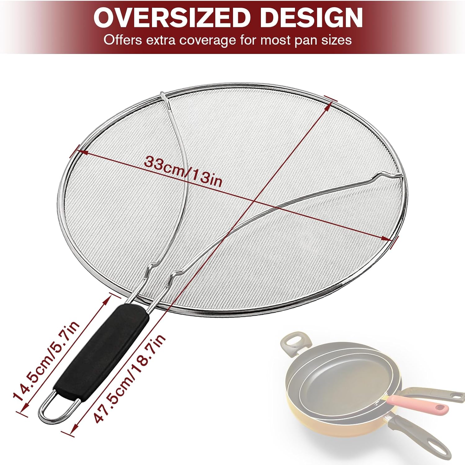 - 【HIGH QUALITY MATERIAL, DURABLE AND RELIABLE】Splash guard is made of perforated stainless steel with fine and delicate mesh. Even in the case of high temperature overheating, it always keeps the color as new, durable and will not fade or deform.