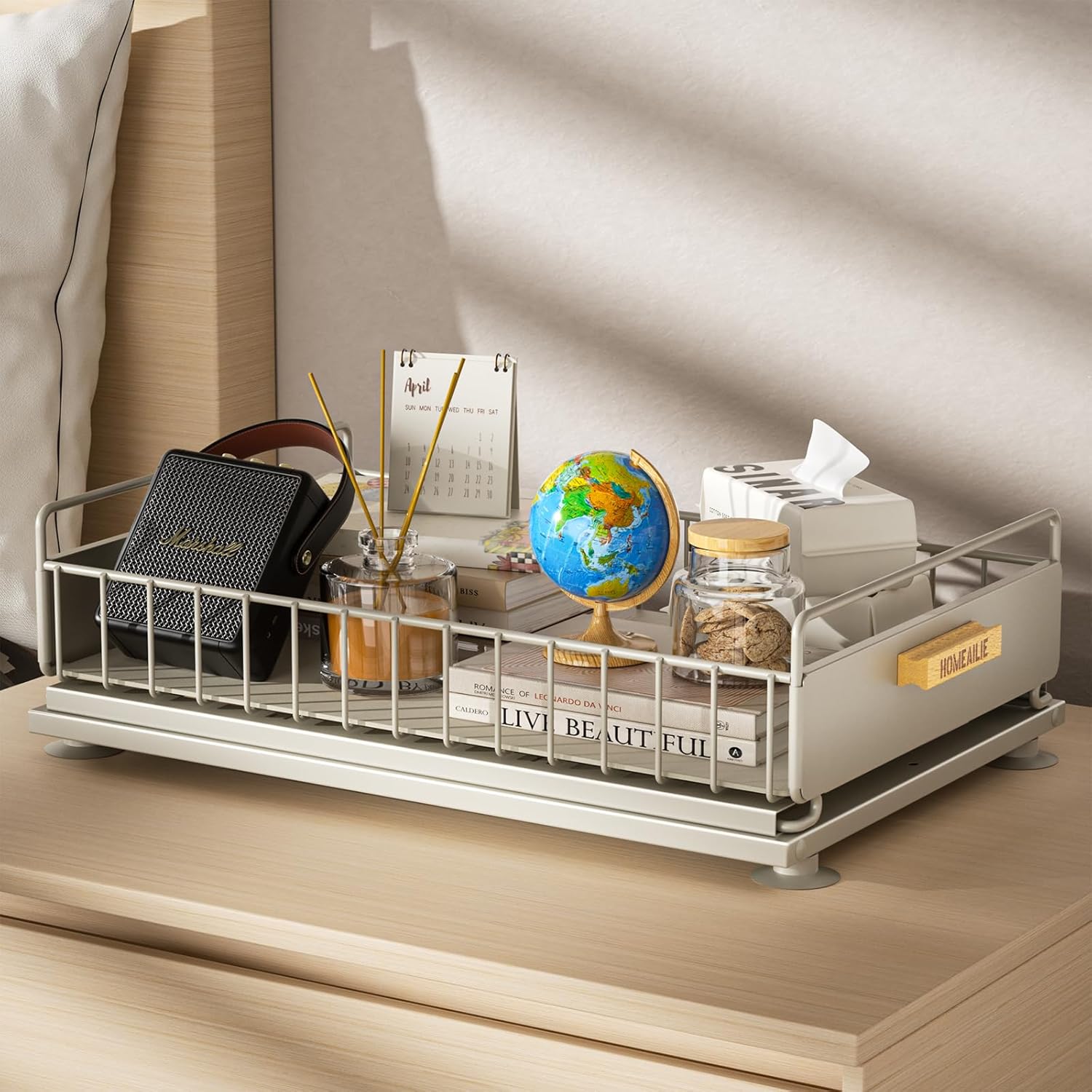 - Expandable space and slide-out design:Under cabinet organizer quick access to items with smooth pull-out slides (noise-reducing damping technology),eliminating the need to bend down to find items under the sink cabinet