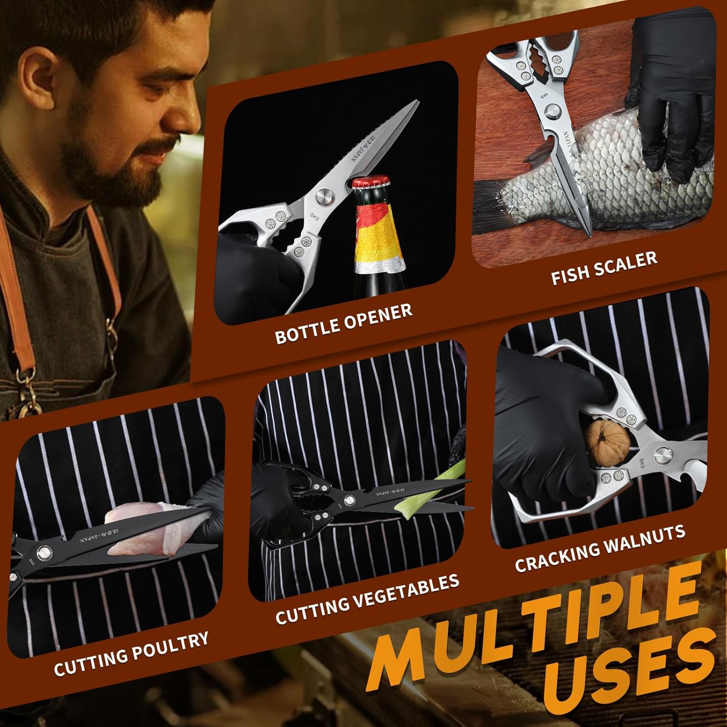 - Two Color Options--This cooking shear set includes one silver and one black kitchen shear. The silver kitchen scissor offers a classic and elegant appearance, perfect for any kitchen setting, while the black turkey shear adds a modern and sleek touch, elevating your culinary experience with its sophisticated look. Choose the color that best matches your kitchen style and needs.