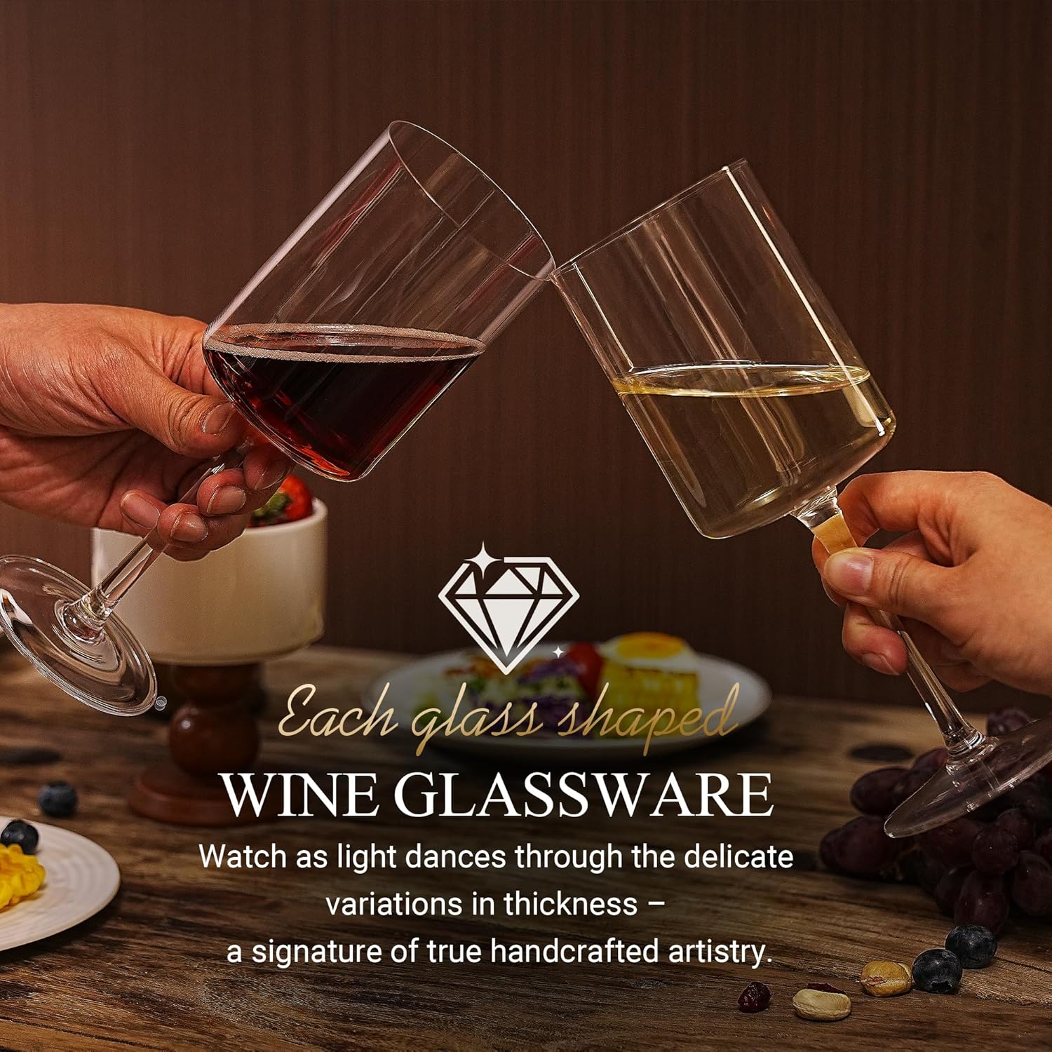MICHLEY Square Crystal Wine Glasses Set of 2-15.5 oz large Long Stem Glassware Red/White Glasses Drinkware Perfect Gifts for Women, Wedding,Birthday Decorations