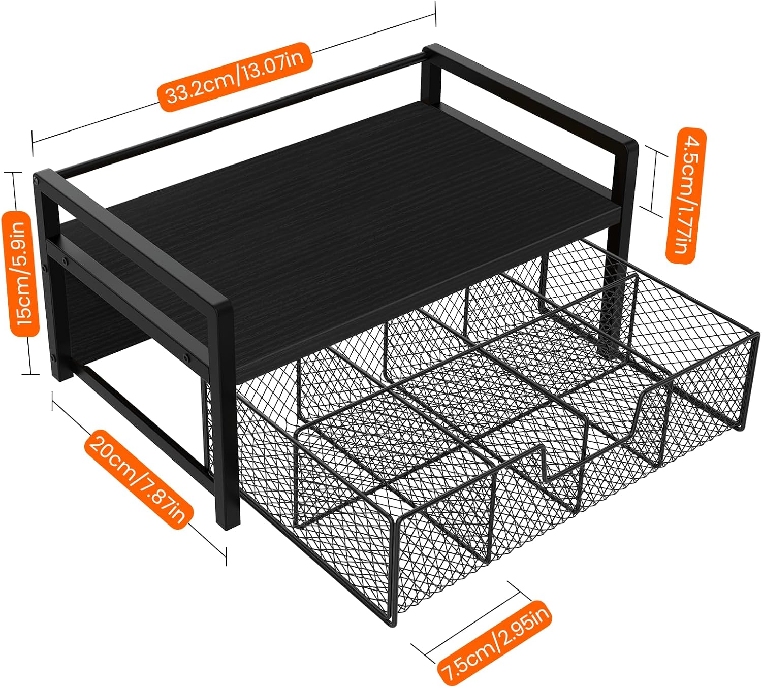 - Multi-Functional & Durable: This versatile storage rack is made from high-quality particleboard and a reinforced, widened metal frame, built to last, mildly waterproof, and easy to clean. It is not just for tea bags but can also be used to store coffee capsules, k cups in a coffee bar, or organize spices in the kitchen