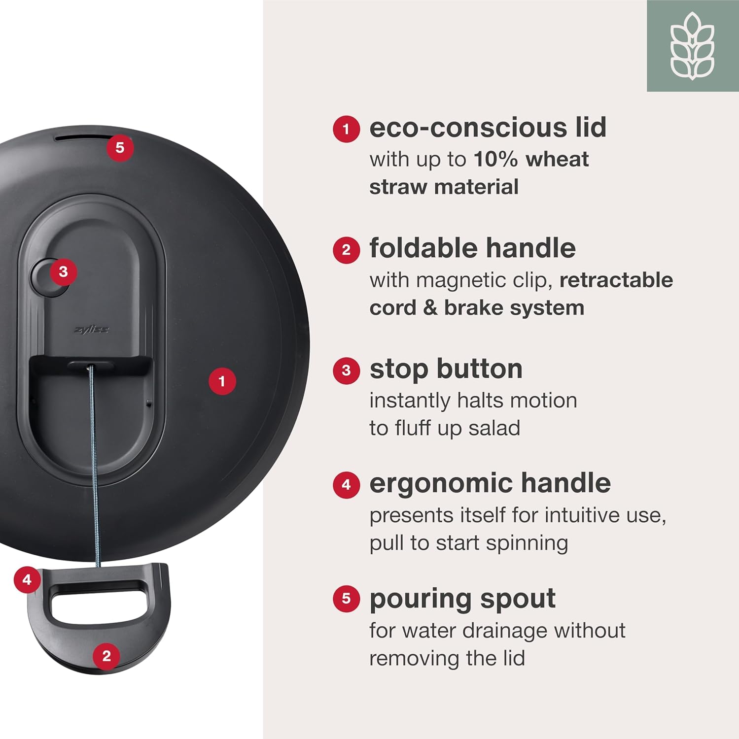 Zyliss Easy Spin Salad Spinner - Fruit & Veggie Dryer - Produce Spinner & Cleaner for Salad Prep - Dishwasher-Safe Kitchen Essential - Non-Slip Bowl with Pull Handle - New Stainless Easy Spin Small