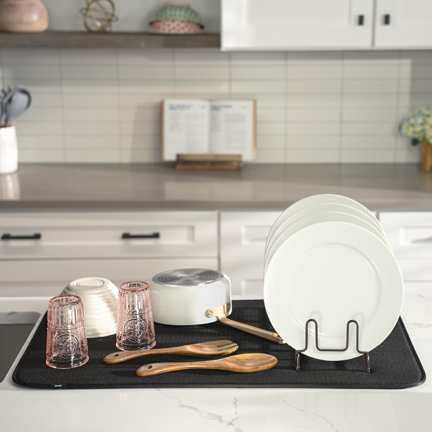 - Dish drying mats for kitchen counter are reusable, machine washable, and easy to store for kitchen organization; durable construction will not chip or break like a stone dish drying mat for kitchen