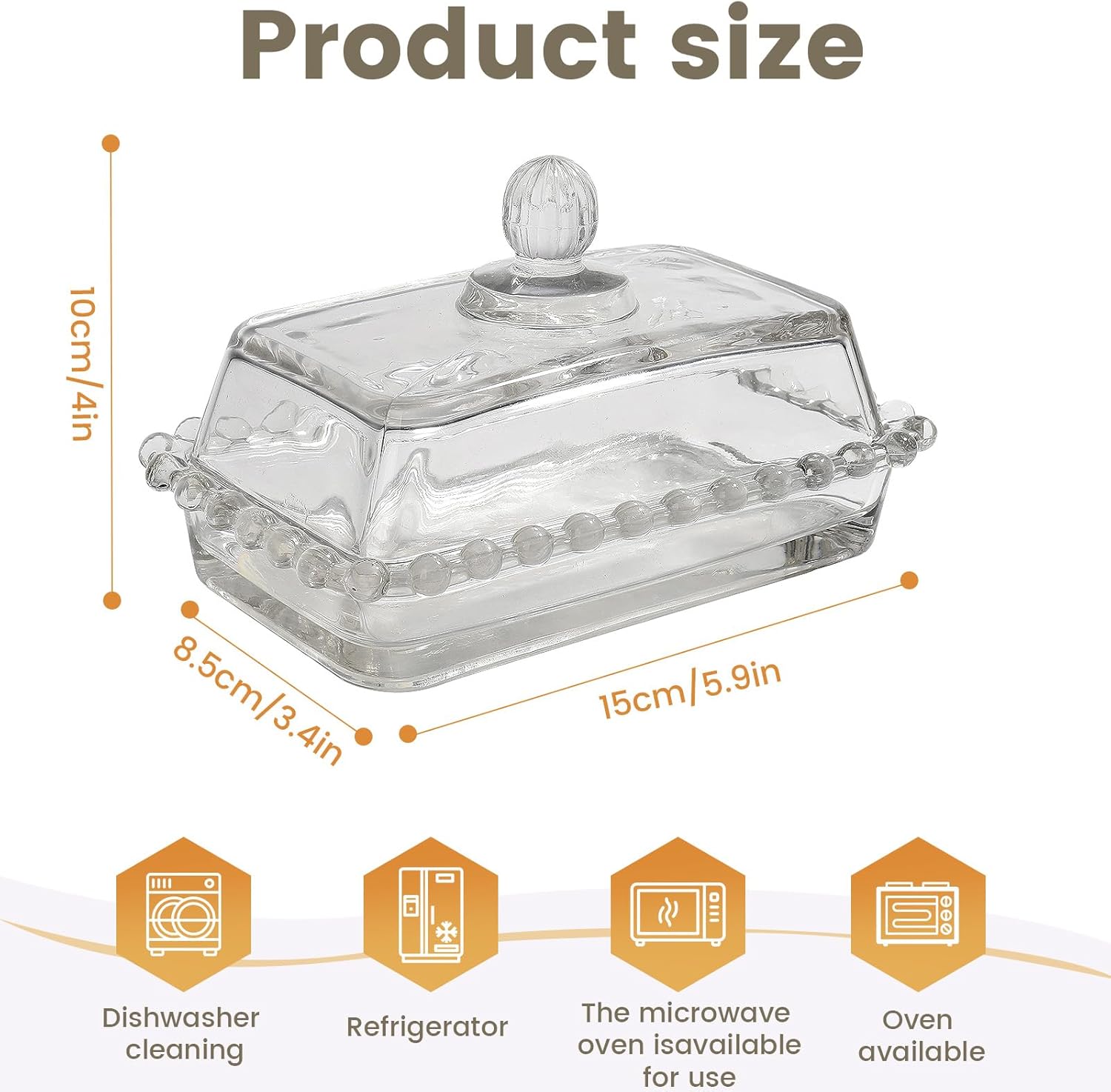 Glass Butter Dish with Large capacity for Countertop Crystal Butter Container with Cover for Counter Butter Keeper Tray Holder for Refrigerator